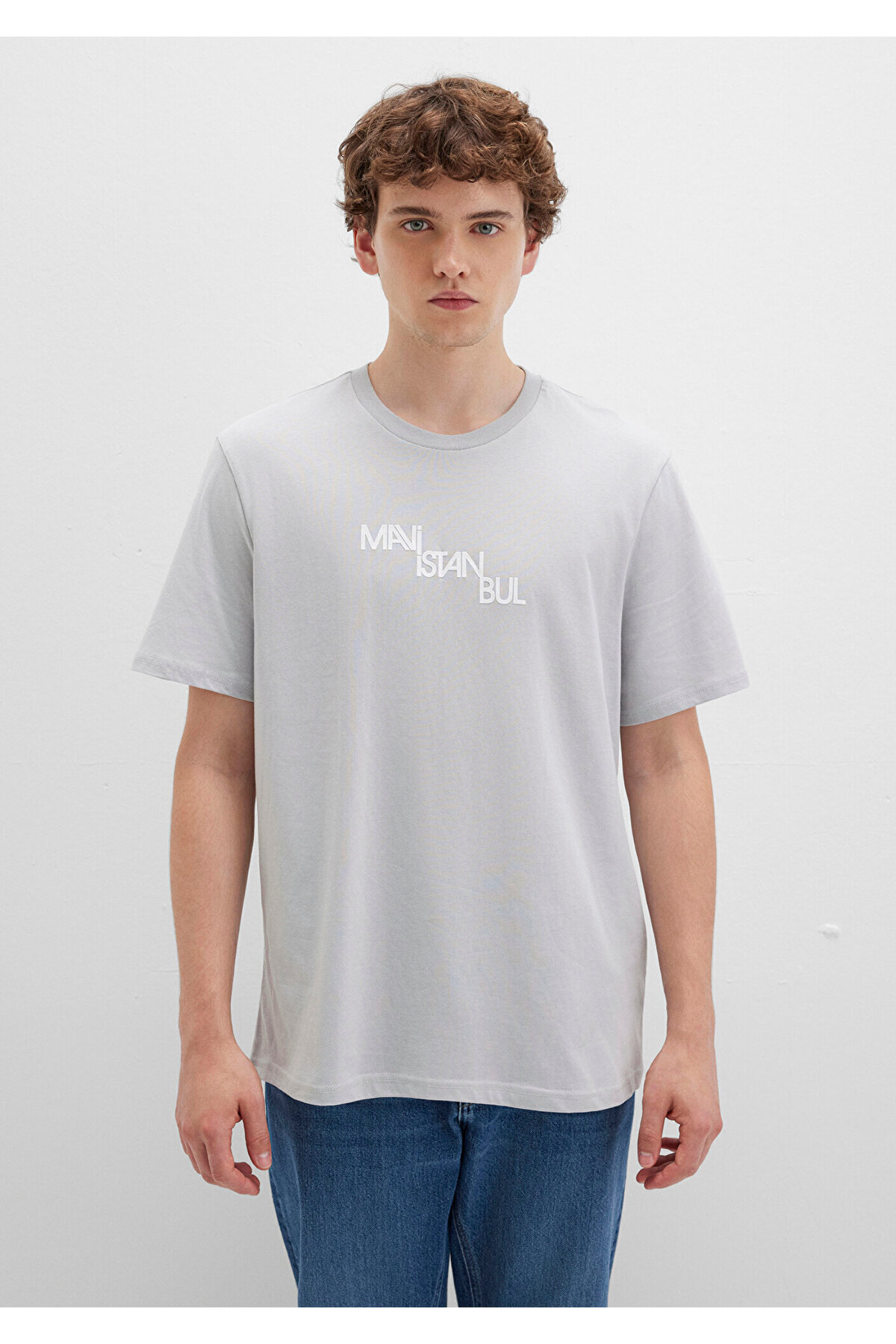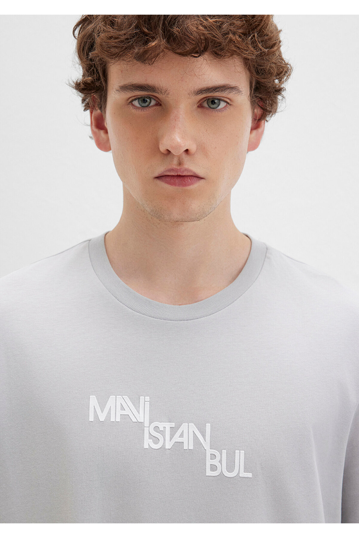 تی شرت خاکستری چاپ ماوی استانبول از 100% پنبه و پارچه متوسط ساخته شده است.