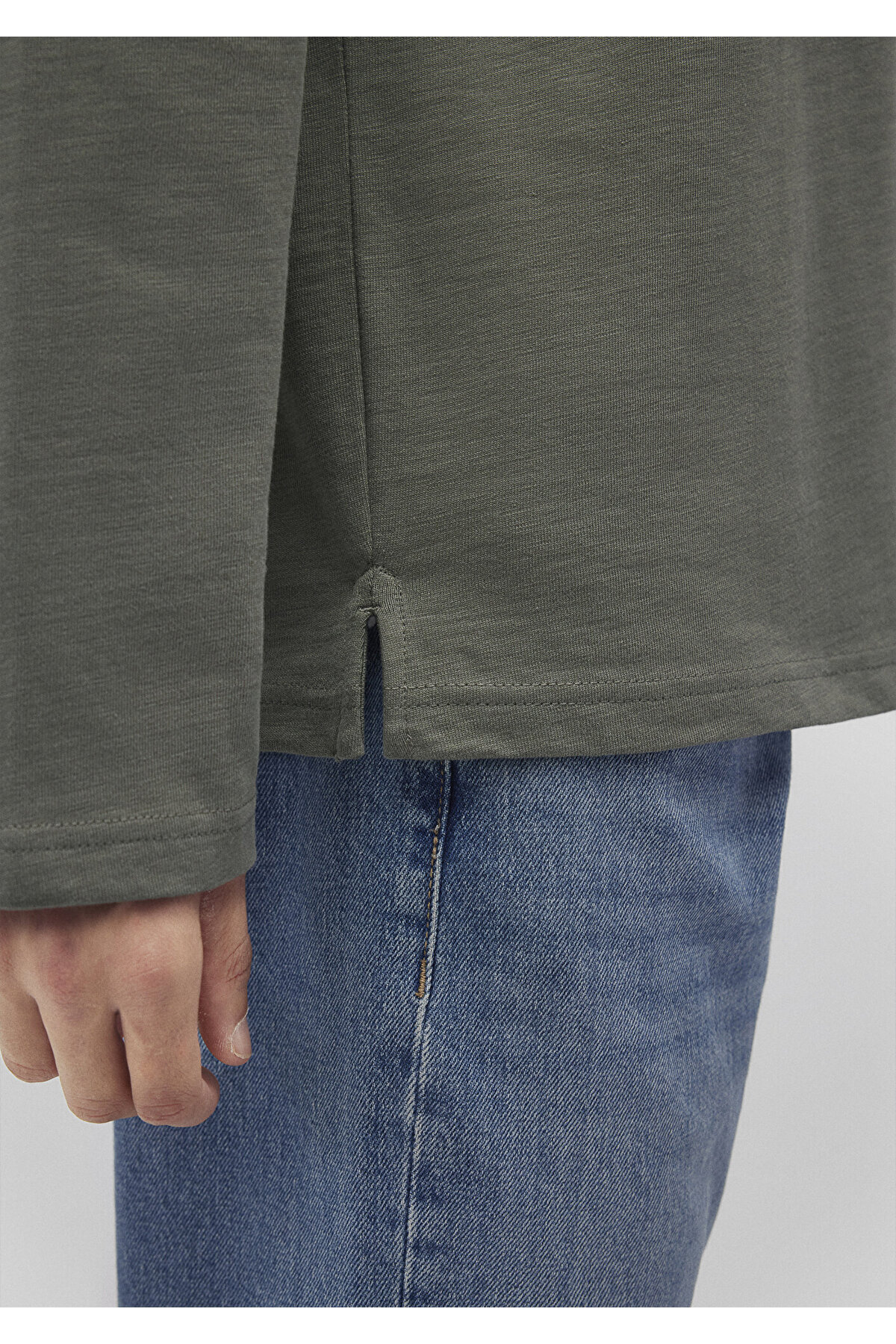 خرید اینترنتی تی شرت آستین بلند سبز با تناسب معمولی / برش معمولی 0612403-85485 برند ماوی Mavi اورجینال از Mavi نمایندگی ترکیه
