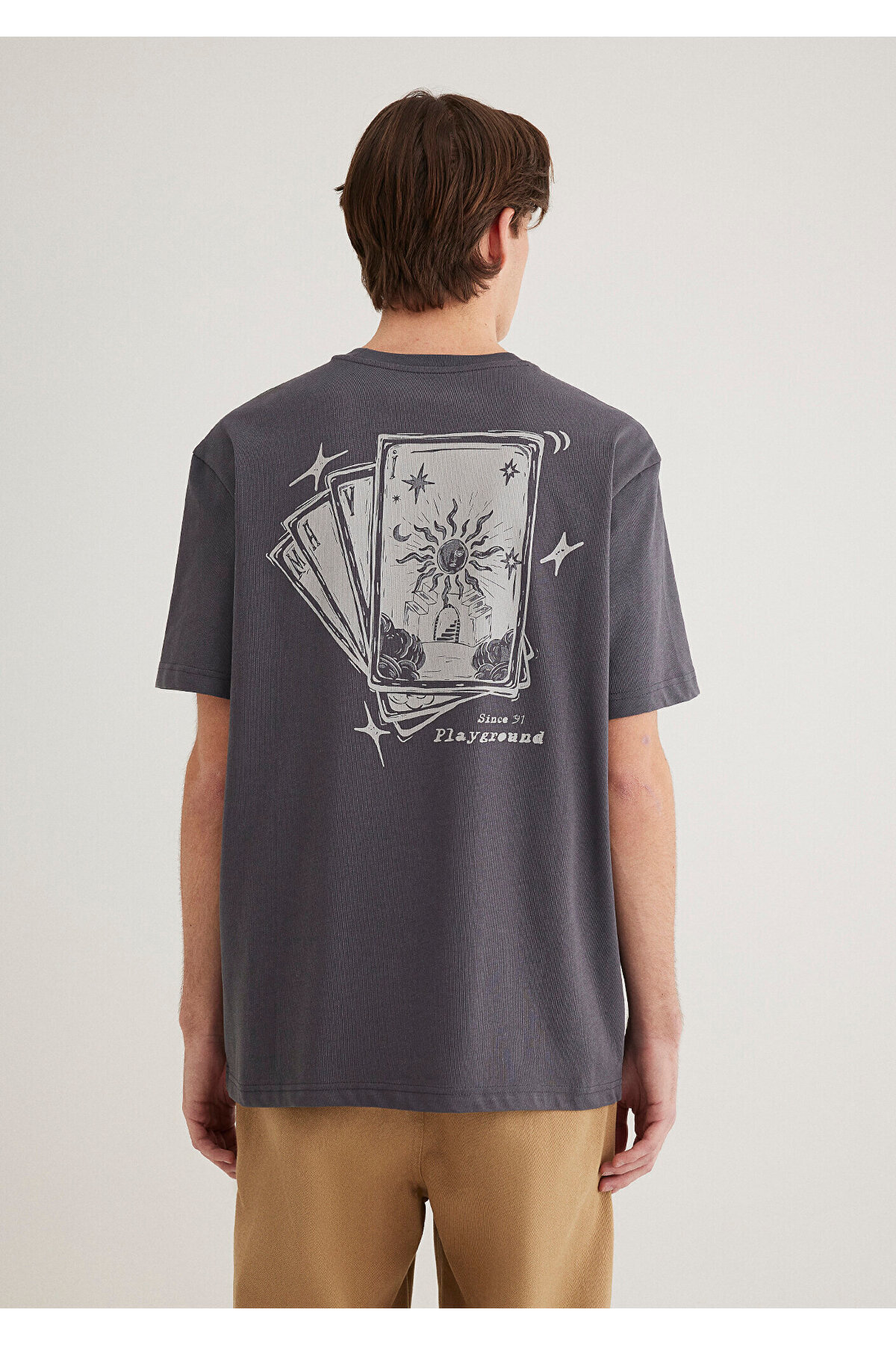 این تی شرت با طراحی آستین کوتاه و چاپ کارت تاروت در جلو و پشت، خودنمایی می کند و برای پوشیدن روزمره ایده آل است.