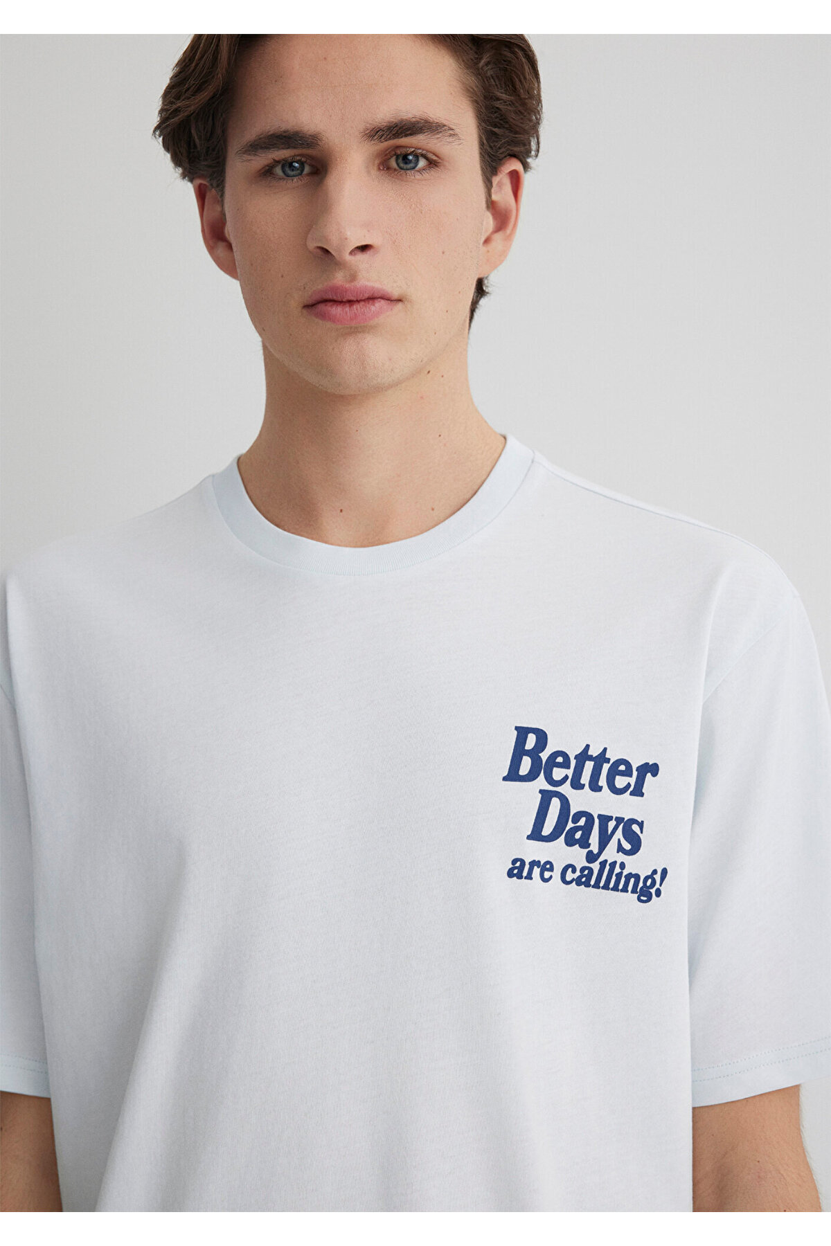 تی شرت آبی Better Days Printed از پارچه 100% پنبه ای متوسط ساخته شده است.
