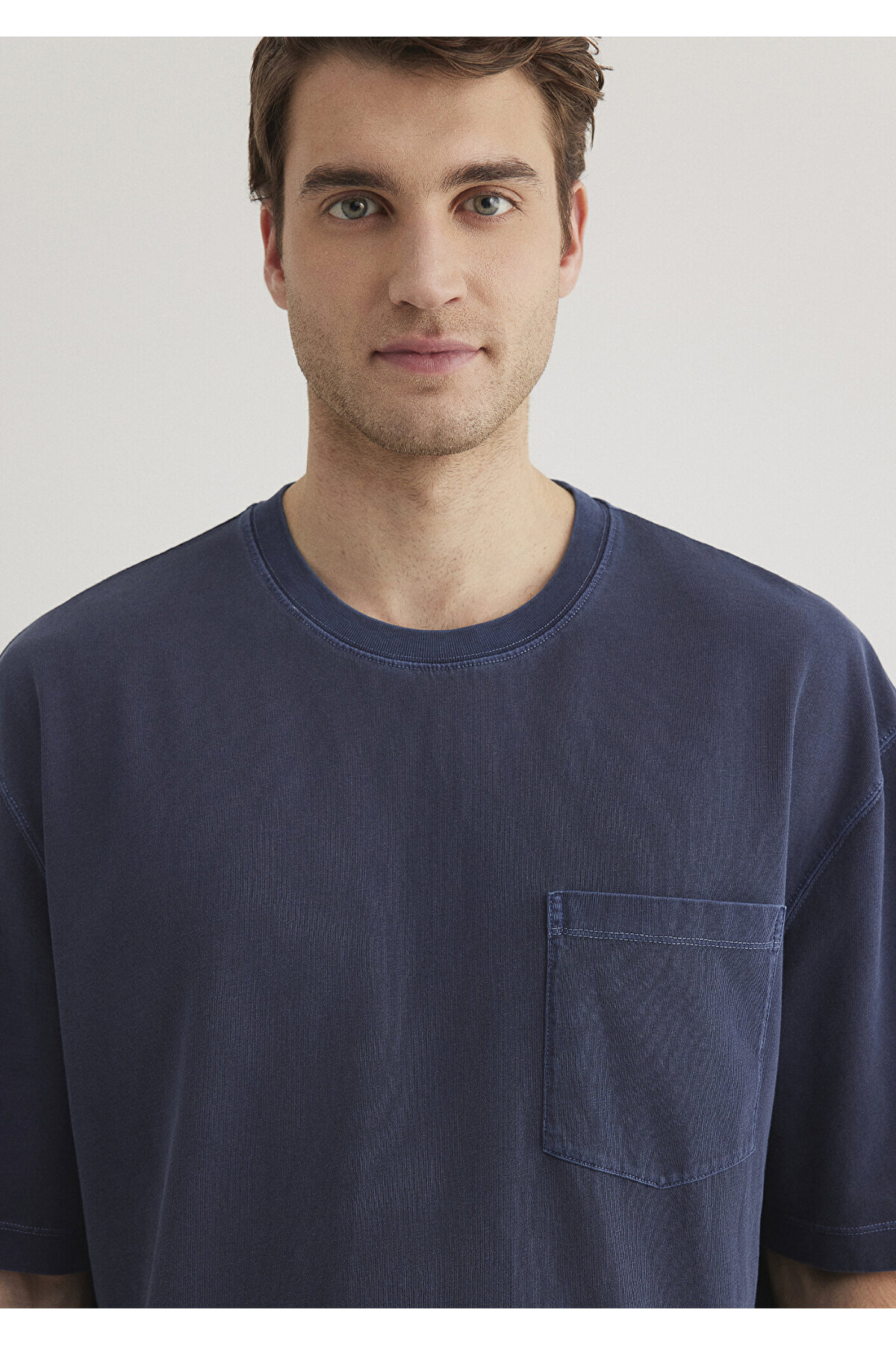 تی شرت آبی سرمه ای با جزئیات جیبی از مجموعه مردانه Mavi. تناسب گشاد / شل، برش راحت، آستین کوتاه. ابعاد مدل: قد: 189 سانتی متر / دور کمر: 78 سانتی متر / سینه: 94 سانتی متر / باسن: 88 سانتی متر. جنسیت: مرد. کمر: کمر معمولی. نوع پارچه: بافتنی. آستین: استاندارد. محل تولید: ترکیه.
