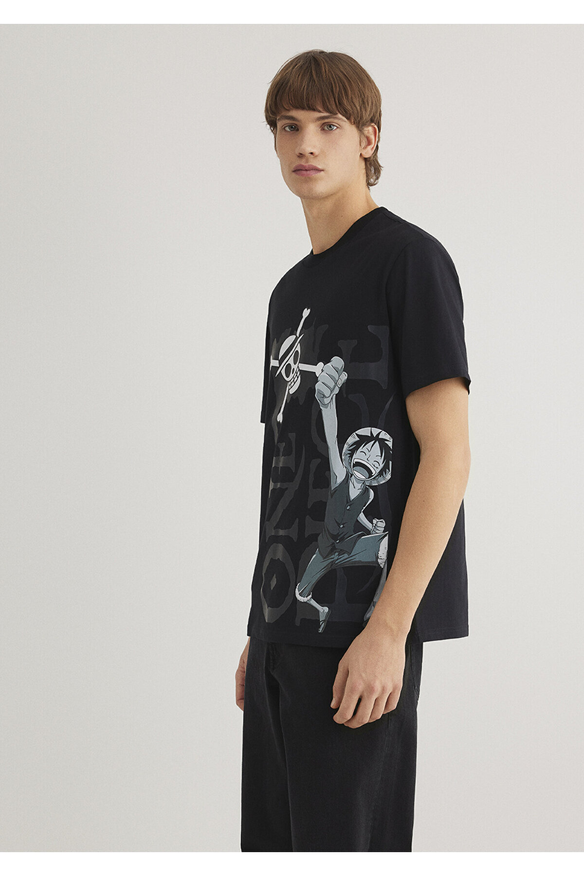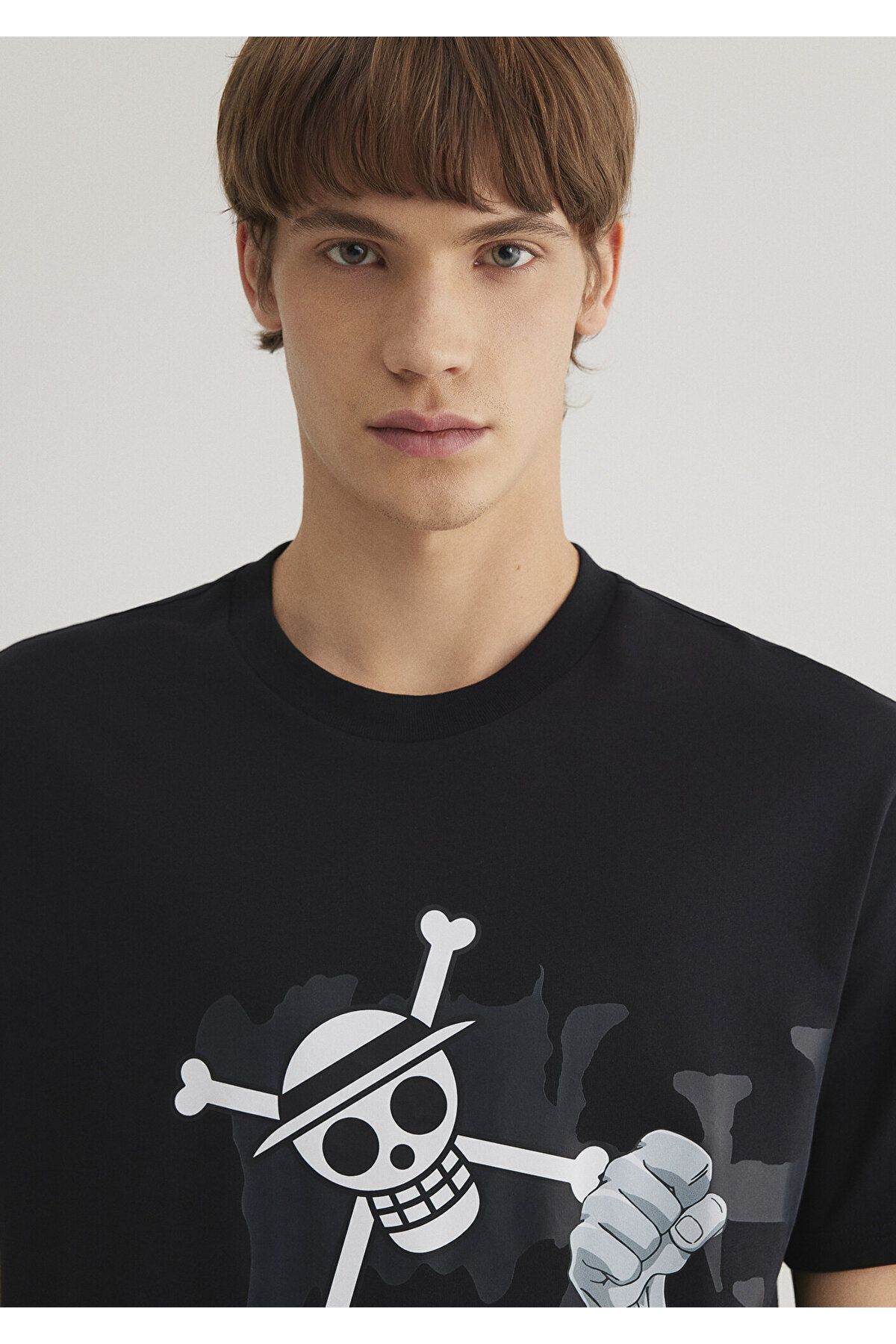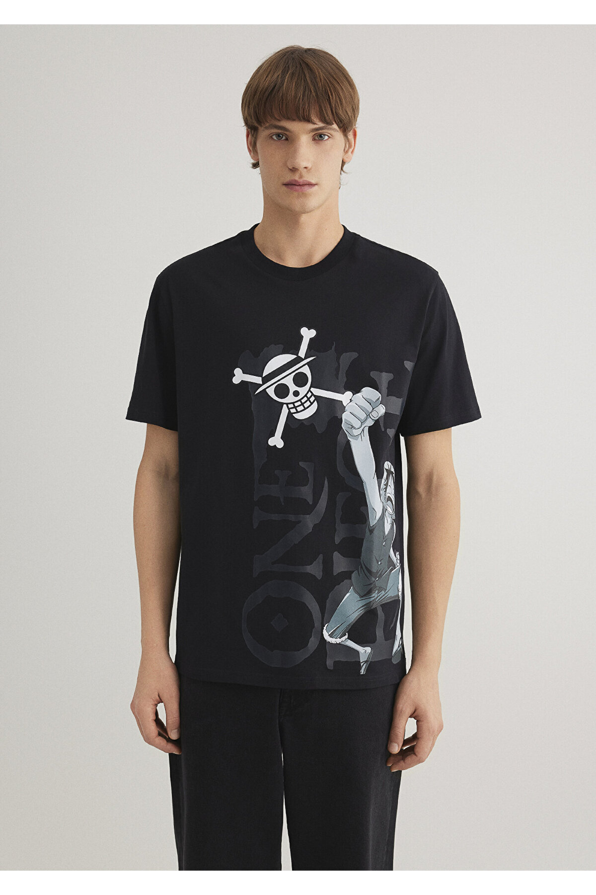 خرید اینترنتی تی شرت سیاه و سفید چاپ شده تک تکه / برش راحت گشاد 0612564-900 برند ماوی Mavi اورجینال از Mavi نمایندگی ترکیه