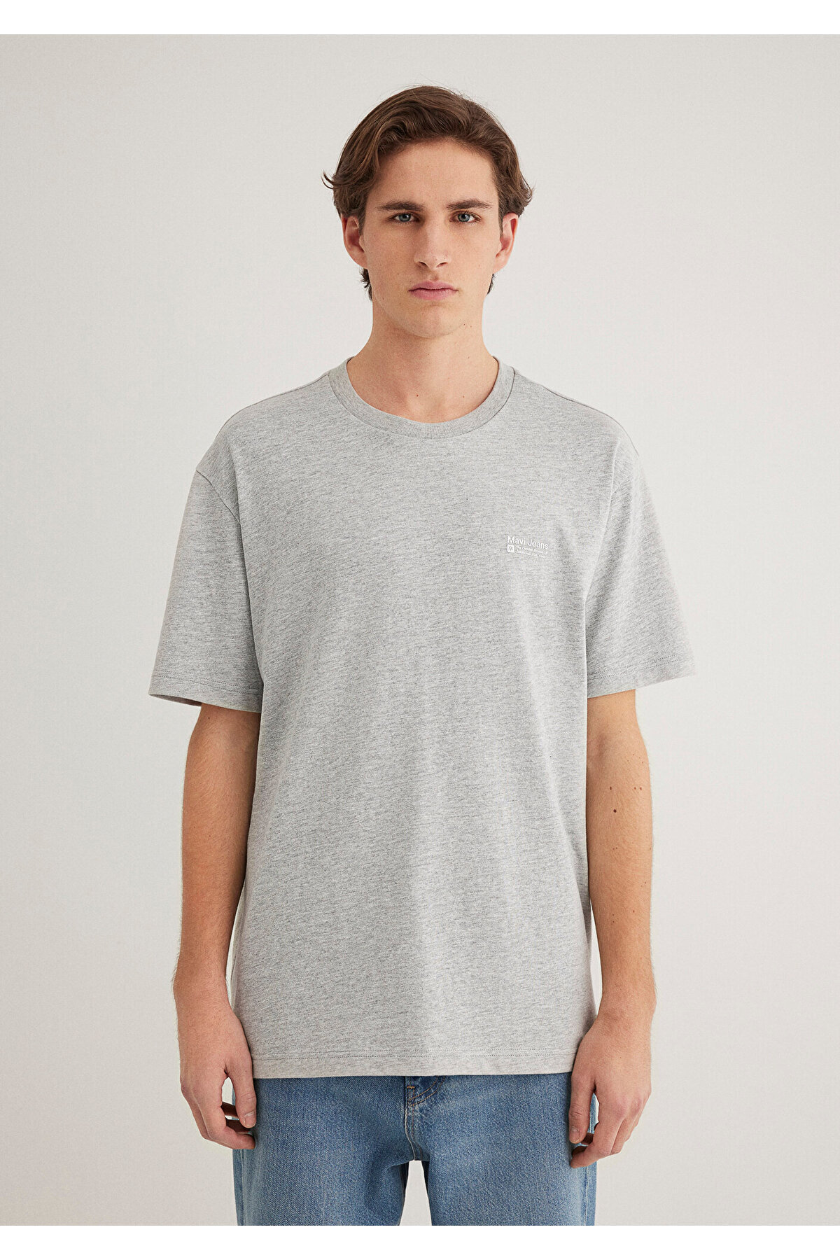 این تیشرت خاکستری چاپ شده از 100% پنبه و پارچه متوسط ساخته شده است.