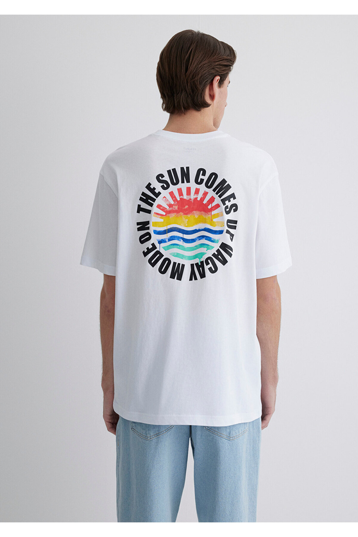 تی شرت سفید با چاپ پشتی از مجموعه مردانه Mavi. تناسب گشاد / آستین کوتاه گشاد. ابعاد مدل: قد: 190 سانتی متر / دور کمر: 74 سانتی متر / سینه: 92 سانتی متر / باسن: 90 سانتی متر. جنس: 100% پنبه. جنسیت: مرد. کمر: کمر معمولی. نوع پارچه: بافتنی. آستین: استاندارد. محل تولید: ترکیه.