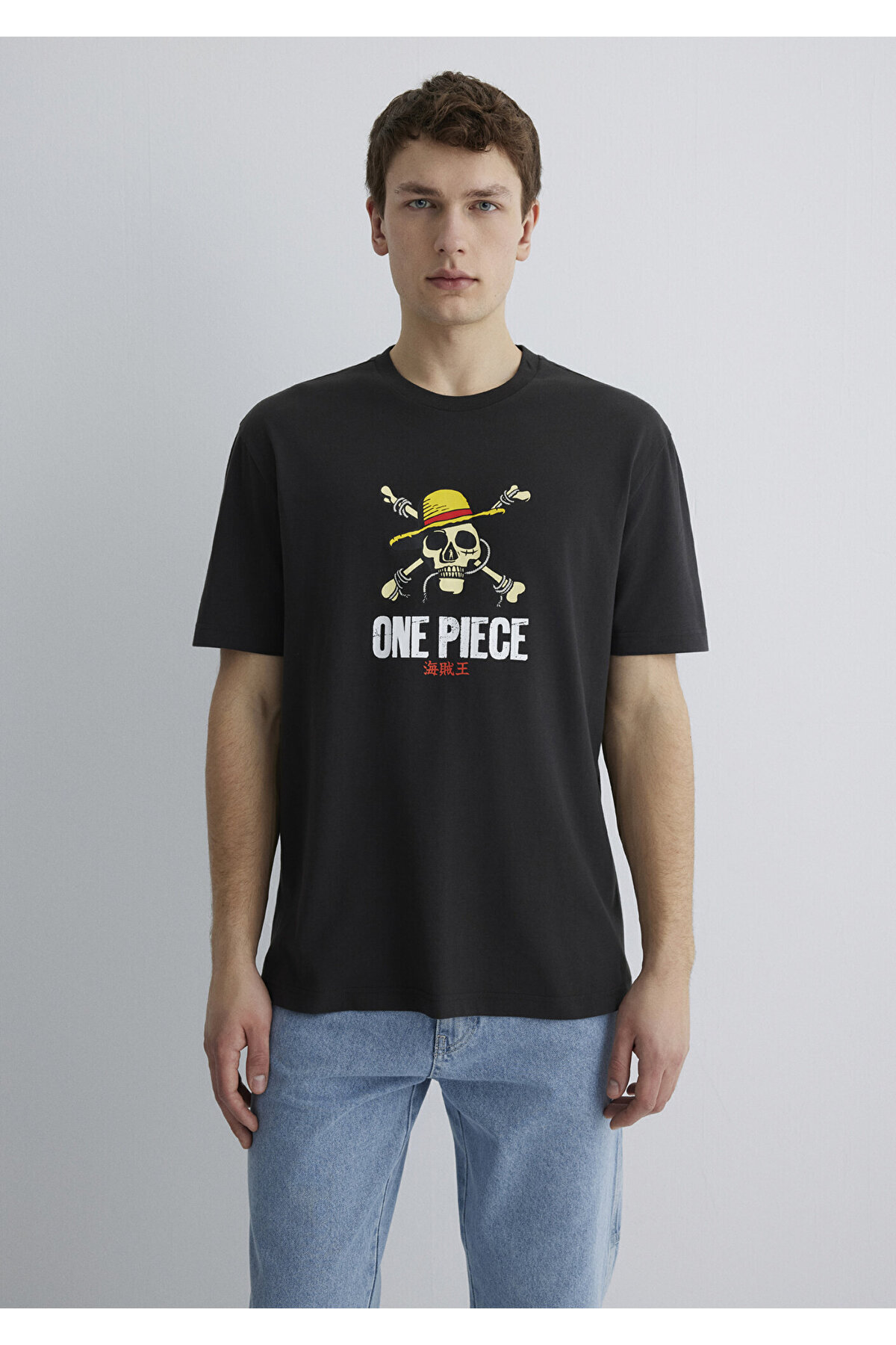 خرید اینترنتی تی شرت آنتراسیت چاپ شده تک تکه گشاد / برش راحت گشاد 0612662-70092 برند ماوی Mavi اورجینال از Mavi نمایندگی ترکیه