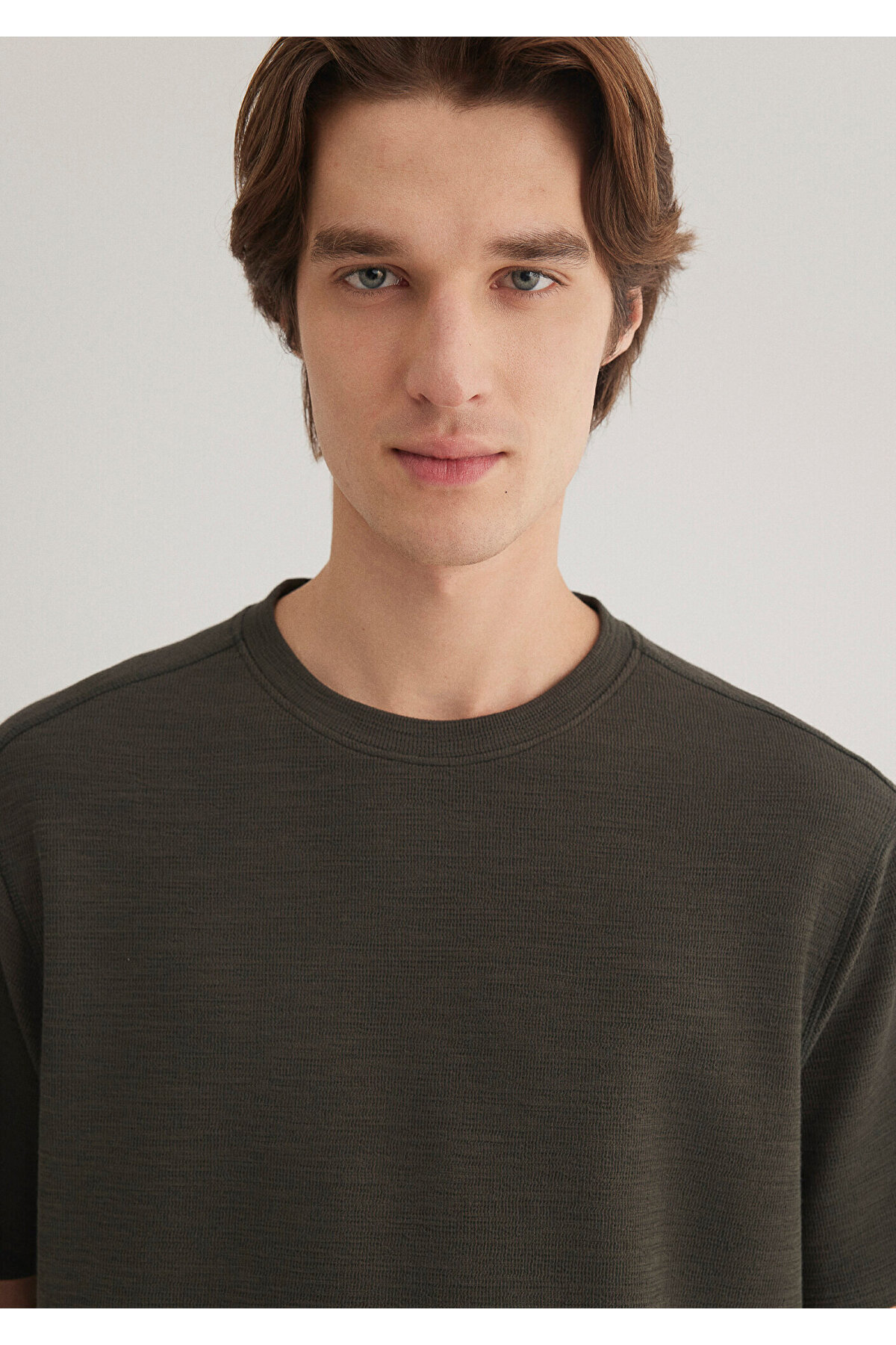 تی شرت خاکی بیسیک از مجموعه مردانه ماوی. مدل آستین کوتاه برش گشاد / گشاد Comfort ابعاد: قد: 189 سانتی متر / دور کمر: 77 سانتی متر / سینه: 94 سانتی متر / باسن: 88 سانتی متر جنس: 43% پنبه 38% پلی استر 19% ویسکوز جنسیت: کمر مردانه: کمر معمولی جنس پارچه ترکیه:
