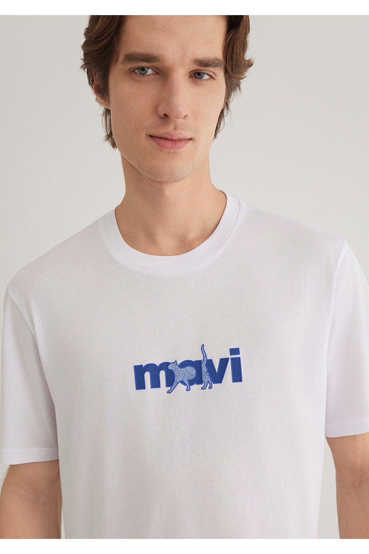 تی شرت سفید چاپ گربه آبی از مجموعه مردانه Mavi.