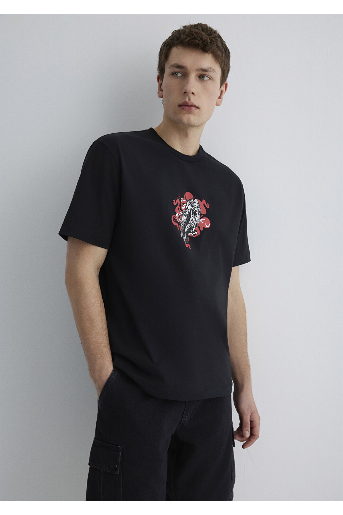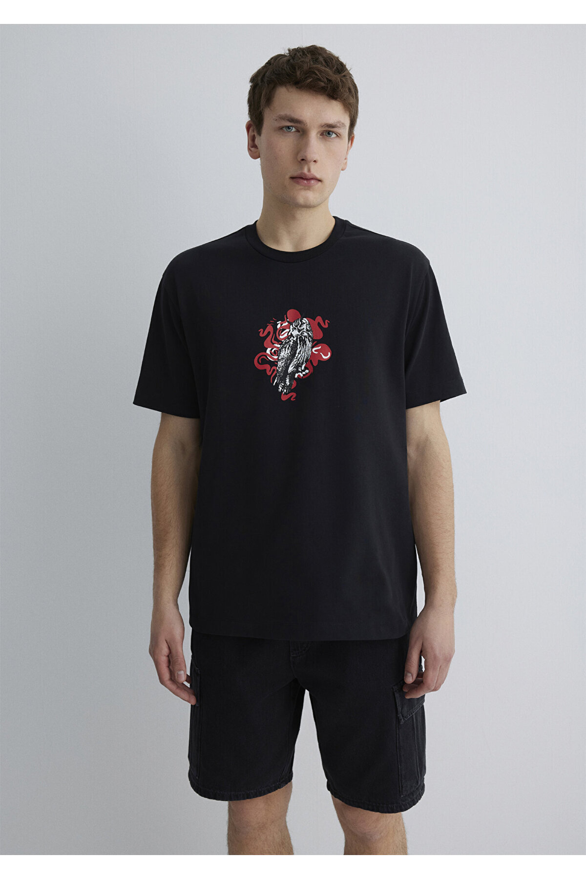 خرید اینترنتی تی شرت مشکی چاپ شده Loose Fit / Loose Comfortable Cut 0612809-900 برند ماوی Mavi اورجینال از Mavi نمایندگی ترکیه