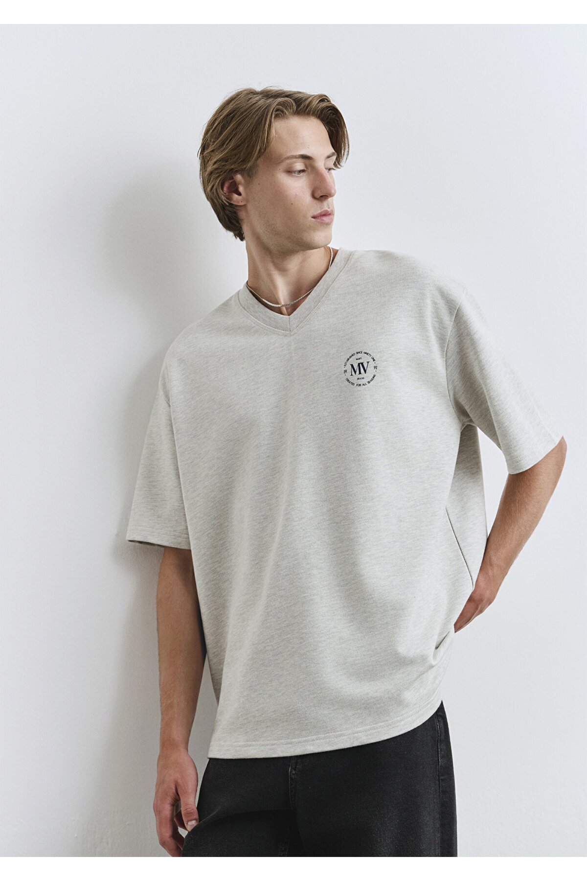 تی شرت خاکستری با چاپ MV از مجموعه مردانه Mavi.