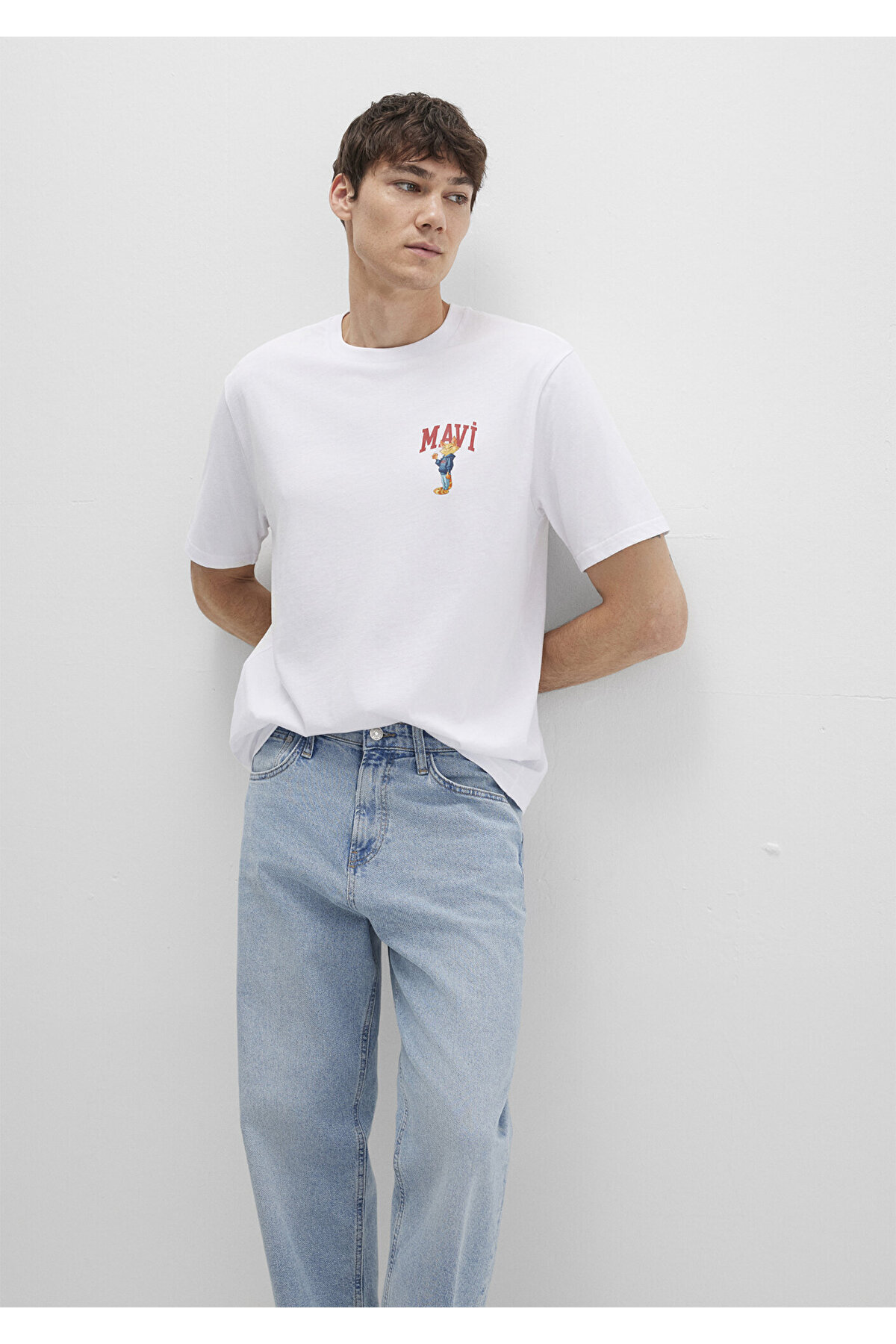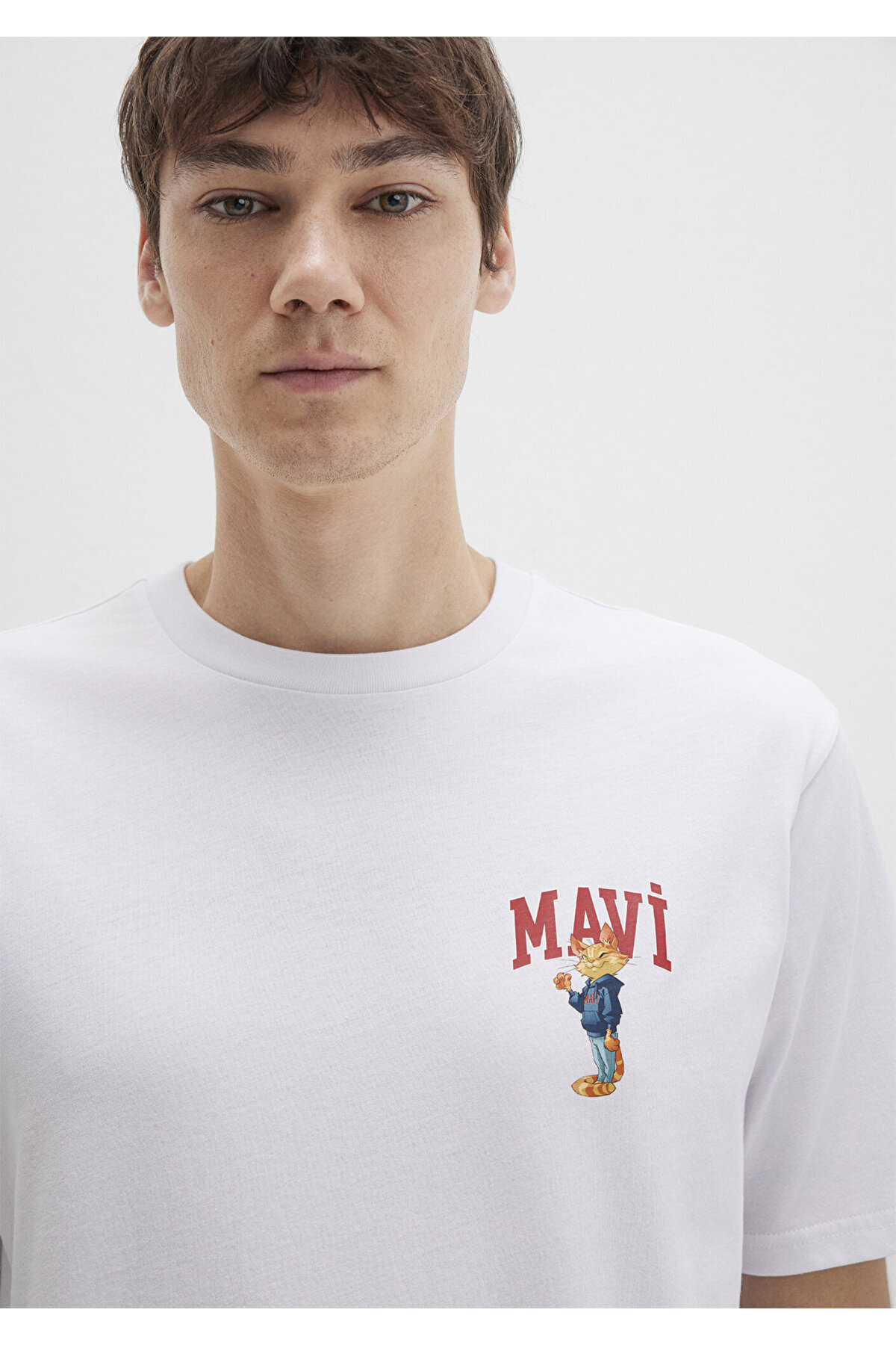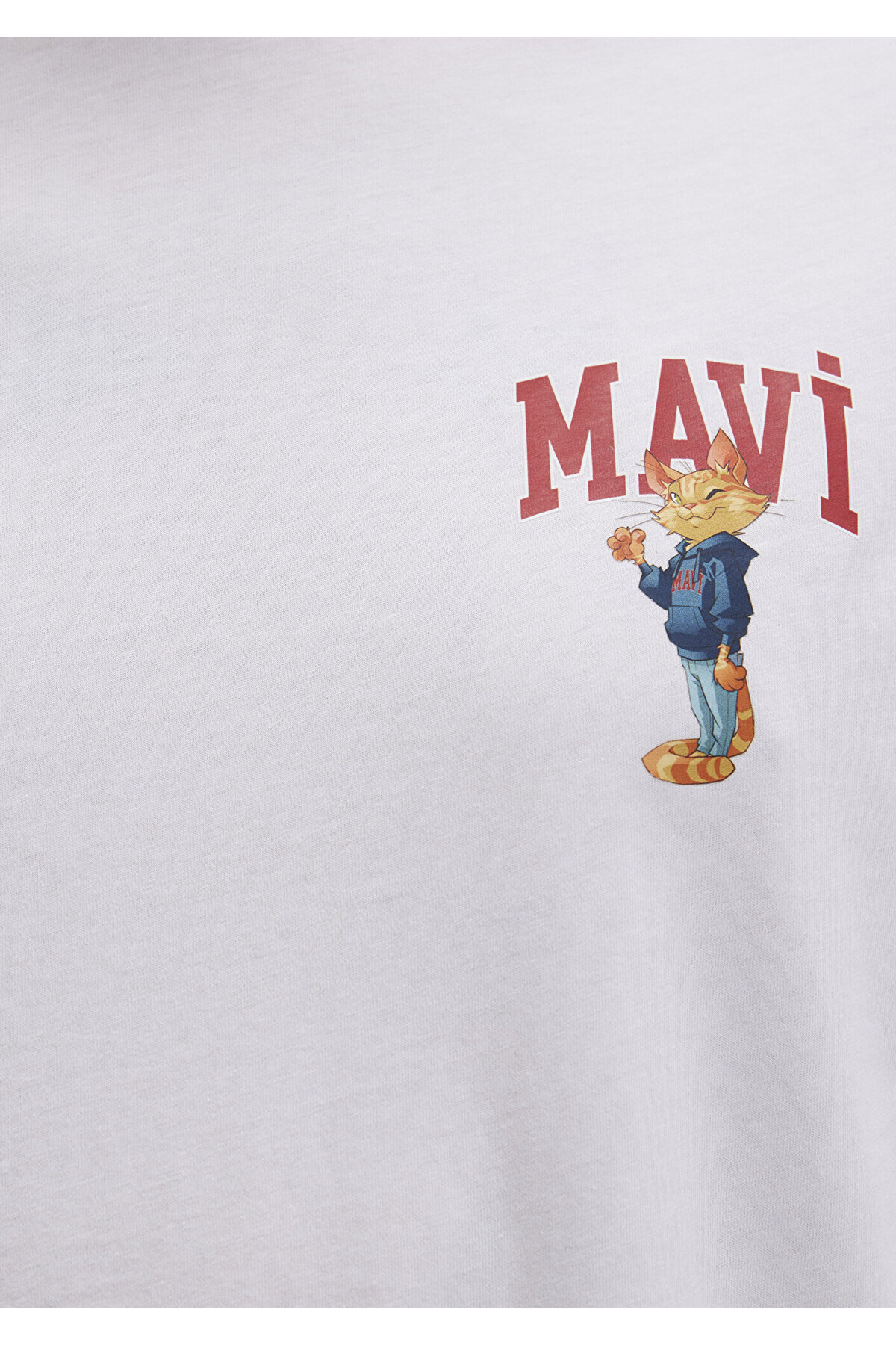 خرید اینترنتی تی شرت سفید چاپ گربه با برش راحت / گشاد 0612861-620 برند ماوی Mavi اورجینال از Mavi نمایندگی ترکیه