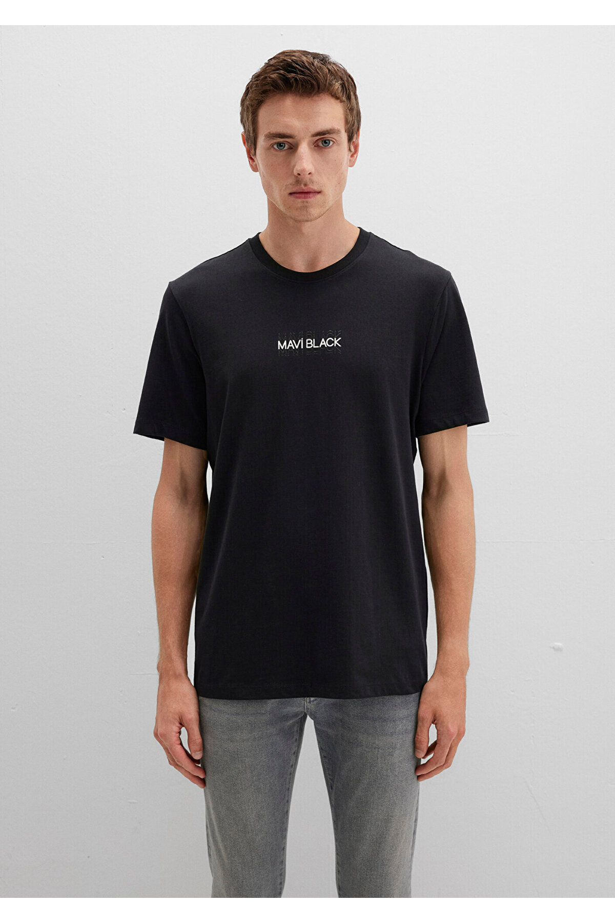 تی شرت مشکی با چاپ مشکی آبی از مجموعه مردانه Mavi.