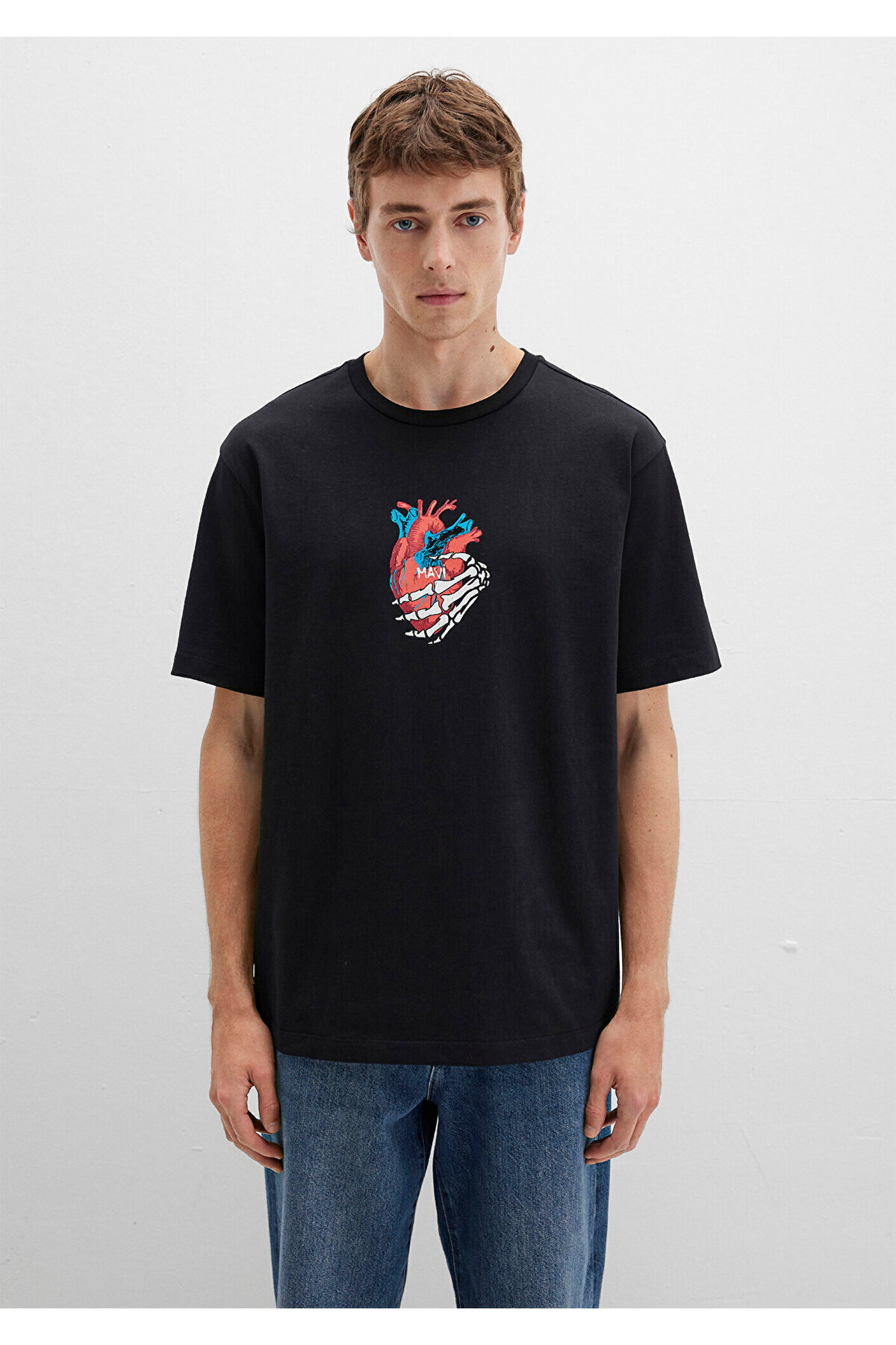تیشرت مشکی با چاپ پشتی از مجموعه مردانه Mavi. تناسب گشاد / آستین کوتاه گشاد. ابعاد مدل: قد: 190 سانتی متر / دور کمر: 81 سانتی متر / سینه: 96 سانتی متر / باسن: 93 سانتی متر. جنس: 100% پنبه. جنسیت: مرد. کمر: کمر معمولی. نوع پارچه: بافتنی. آستین: استاندارد. محل تولید: ترکیه