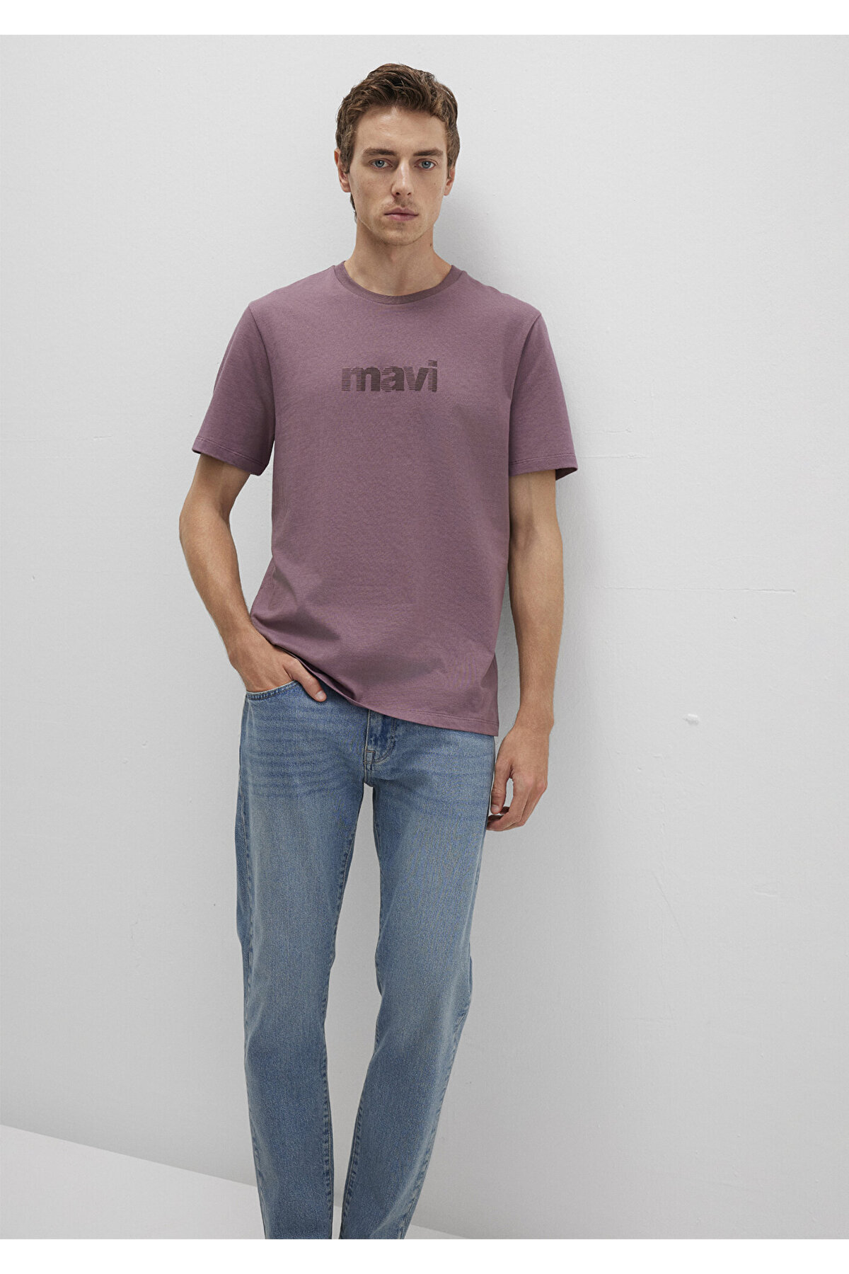 خرید اینترنتی تی شرت بنفش چاپ شده با لوگو با تناسب معمولی / برش معمولی 0612936-70648 برند ماوی Mavi اورجینال از Mavi نمایندگی ترکیه