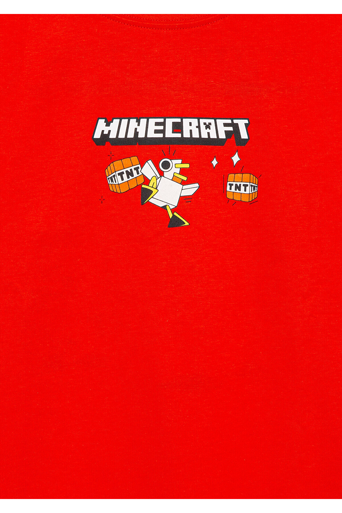تی شرت قرمز چاپ شده Minecraft محصولی کودکانه است که از پارچه 100% پنبه ای متوسط ساخته شده است.
