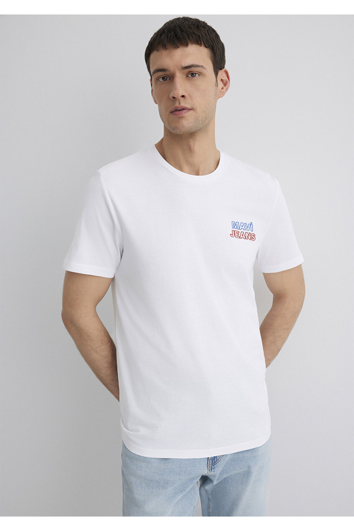 خرید اینترنتی تی شرت سفید چاپ جین باریک / برش باریک 066841-620 برند ماوی Mavi اورجینال از Mavi نمایندگی ترکیه