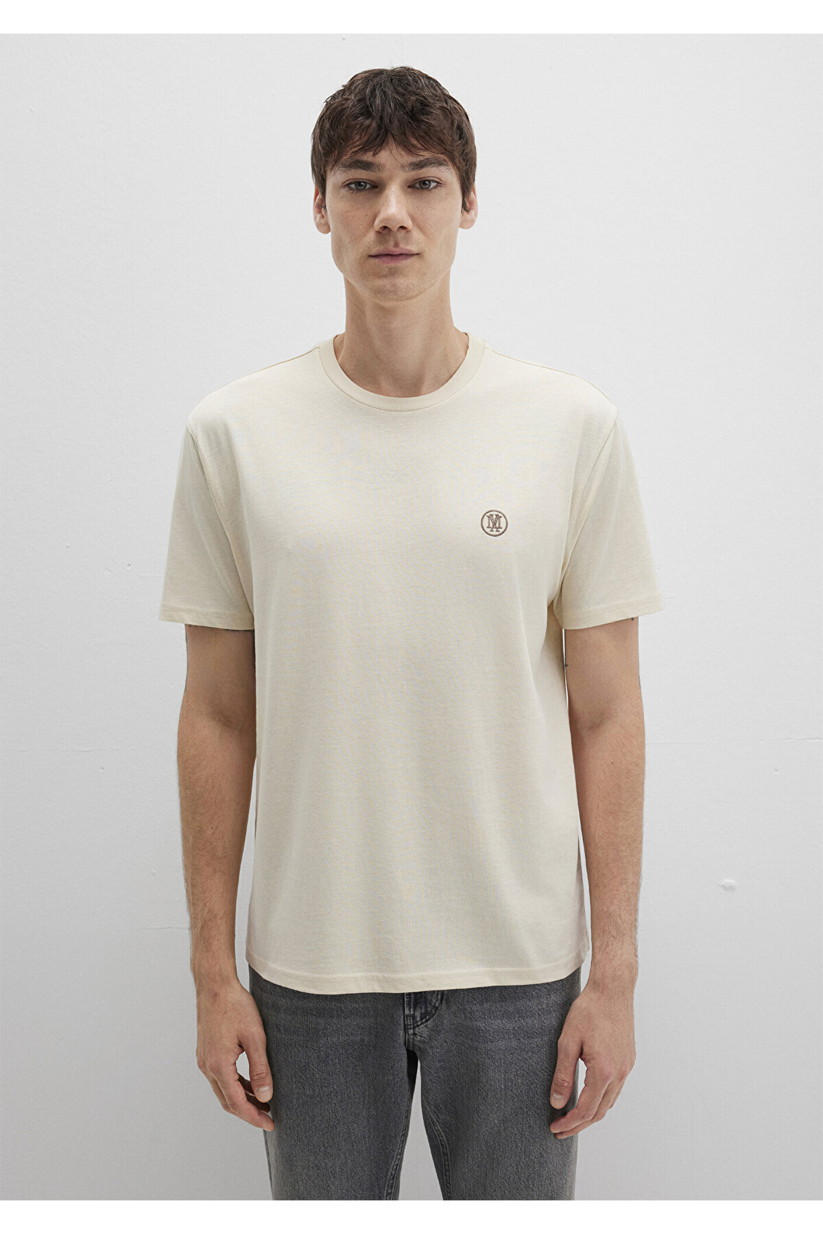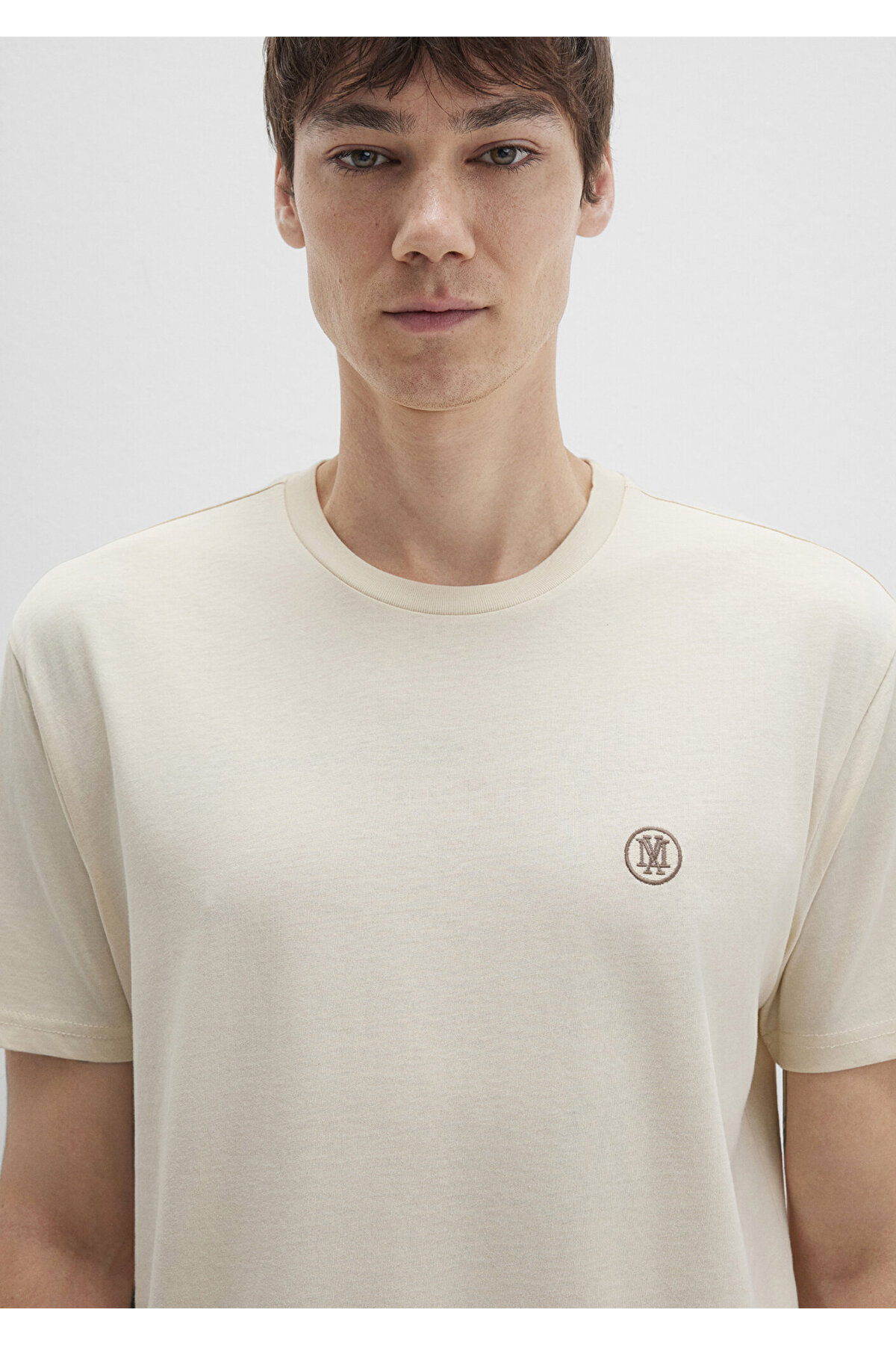 خرید اینترنتی تی شرت ساده بژ با لوگوی دوزی گشاد / برش راحت گشاد 067074-70072 برند ماوی Mavi اورجینال از Mavi نمایندگی ترکیه
