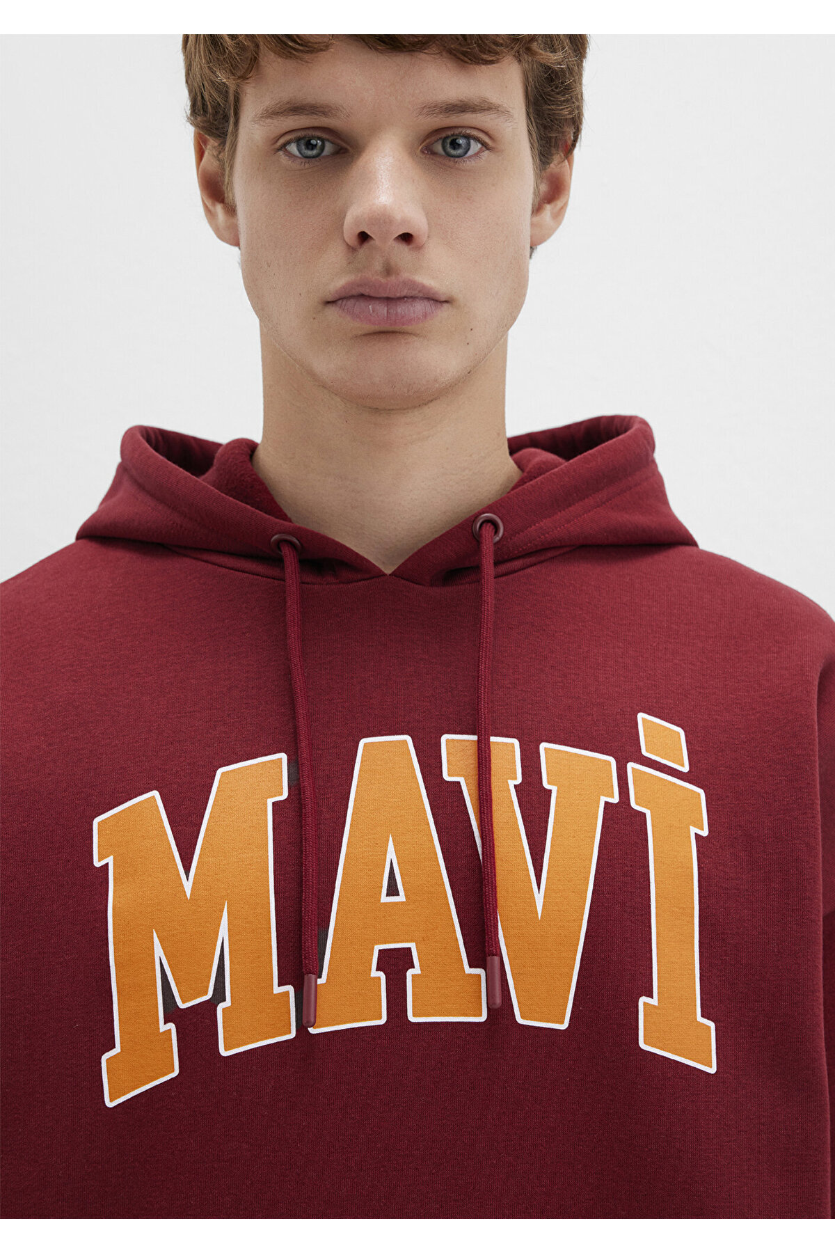 یک سویشرت کلاهدار بورگوندی با چاپ لوگوی آبی از مجموعه مردانه Mavi.