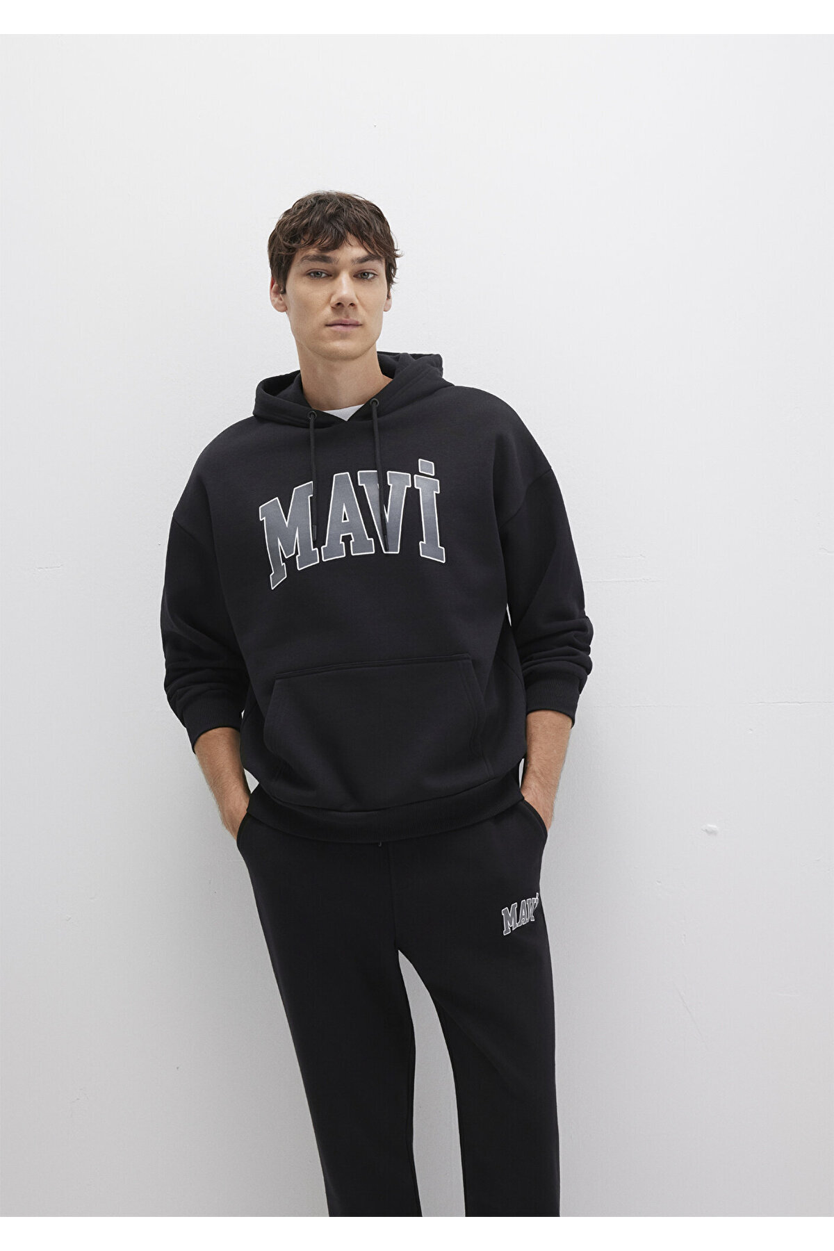 هودی مشکی با چاپ لوگوی آبی از مجموعه مردانه Mavi.