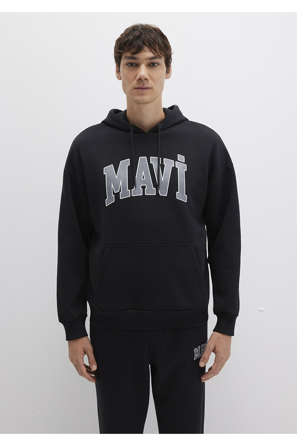 خرید اینترنتی سویشرت مشکی کلاهدار با لوگو 067149-902 برند ماوی Mavi اورجینال از Mavi نمایندگی ترکیه