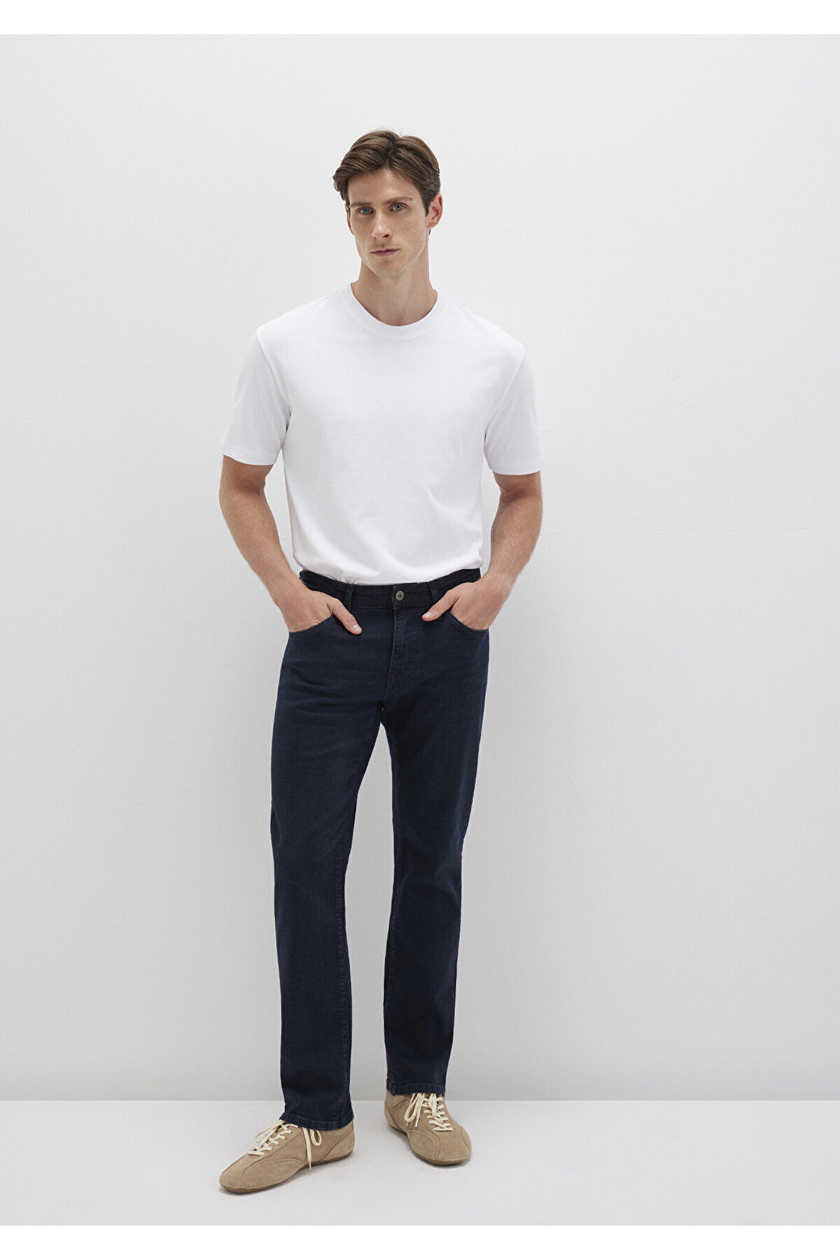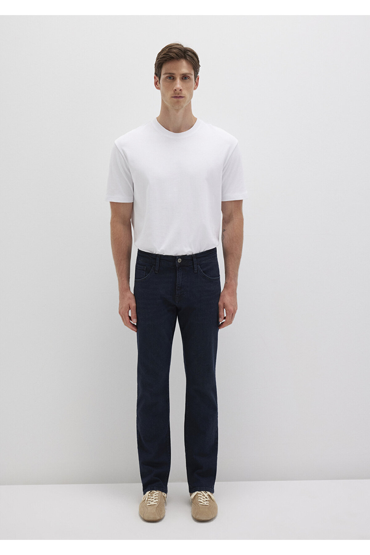 منظم راست کمر منظم پای راست. ابعاد مدل: قد: 187 سانتی متر / دور کمر: 80 سانتی متر / سینه: 99 سانتی متر / باسن: 94 سانتی متر. جنس: 92% پنبه 6% پلی استر 2% الاستین. فصل: 21ILK0. نوع پارچه: جین. آستین: پای راست. کاف: پای راست. جنسیت: مردانه. کمر: کمر معمولی. تناسب: منظم و مستقیم. محل تولید: ترکیه.