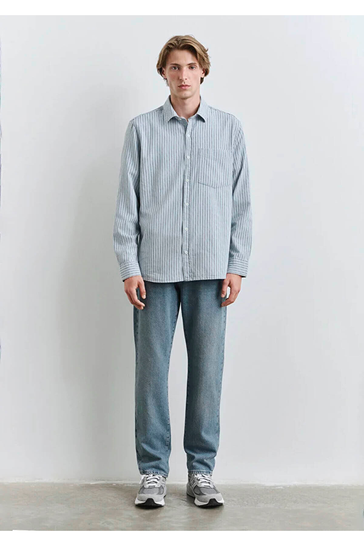 پیراهن ماوی آستین بلند راه راه مردانه | Mavi E134GY113204