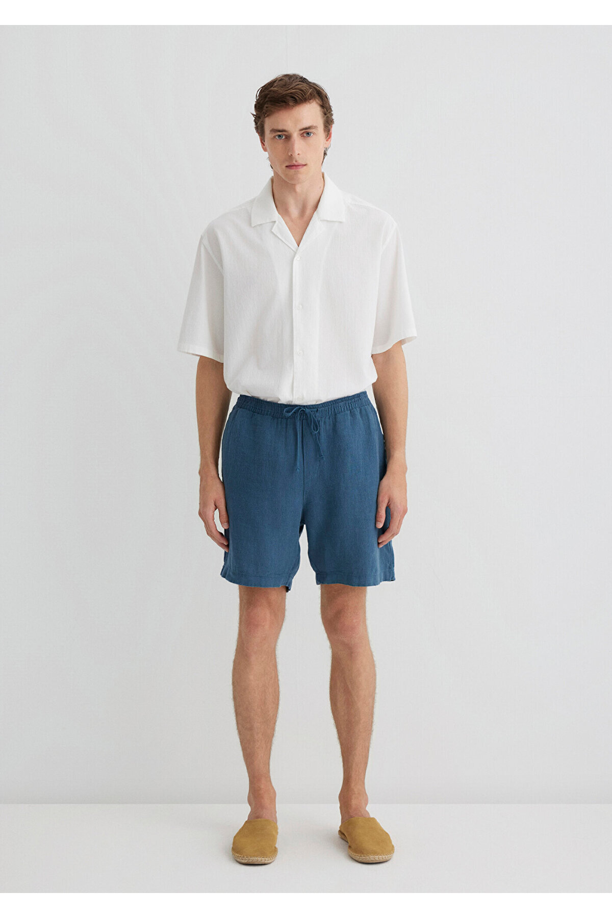 شورت کتانی آبی از مجموعه لینن تاچ Mavi.