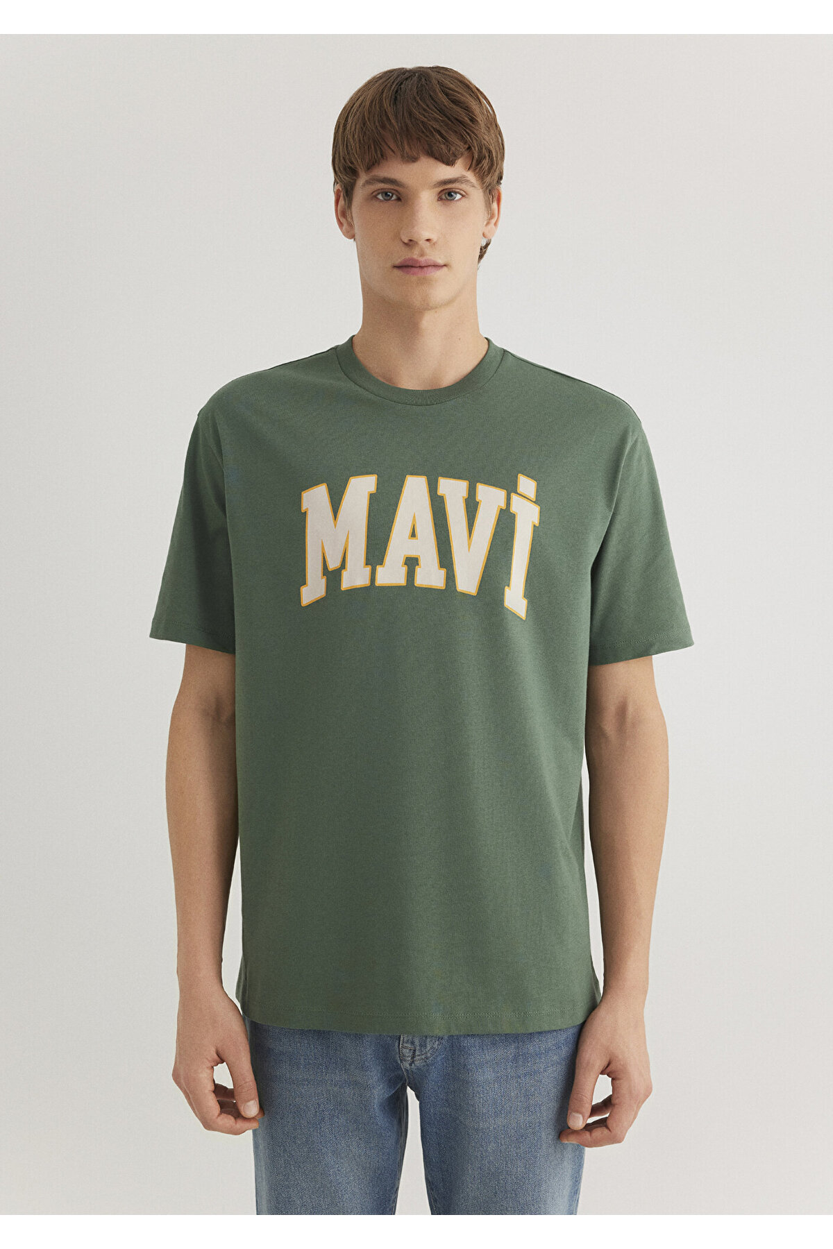 خرید اینترنتی تیشرت سبز چاپ لوگوی گشاد / برش راحت گشاد 0611711-81570 برند ماوی Mavi اورجینال از Mavi نمایندگی ترکیه