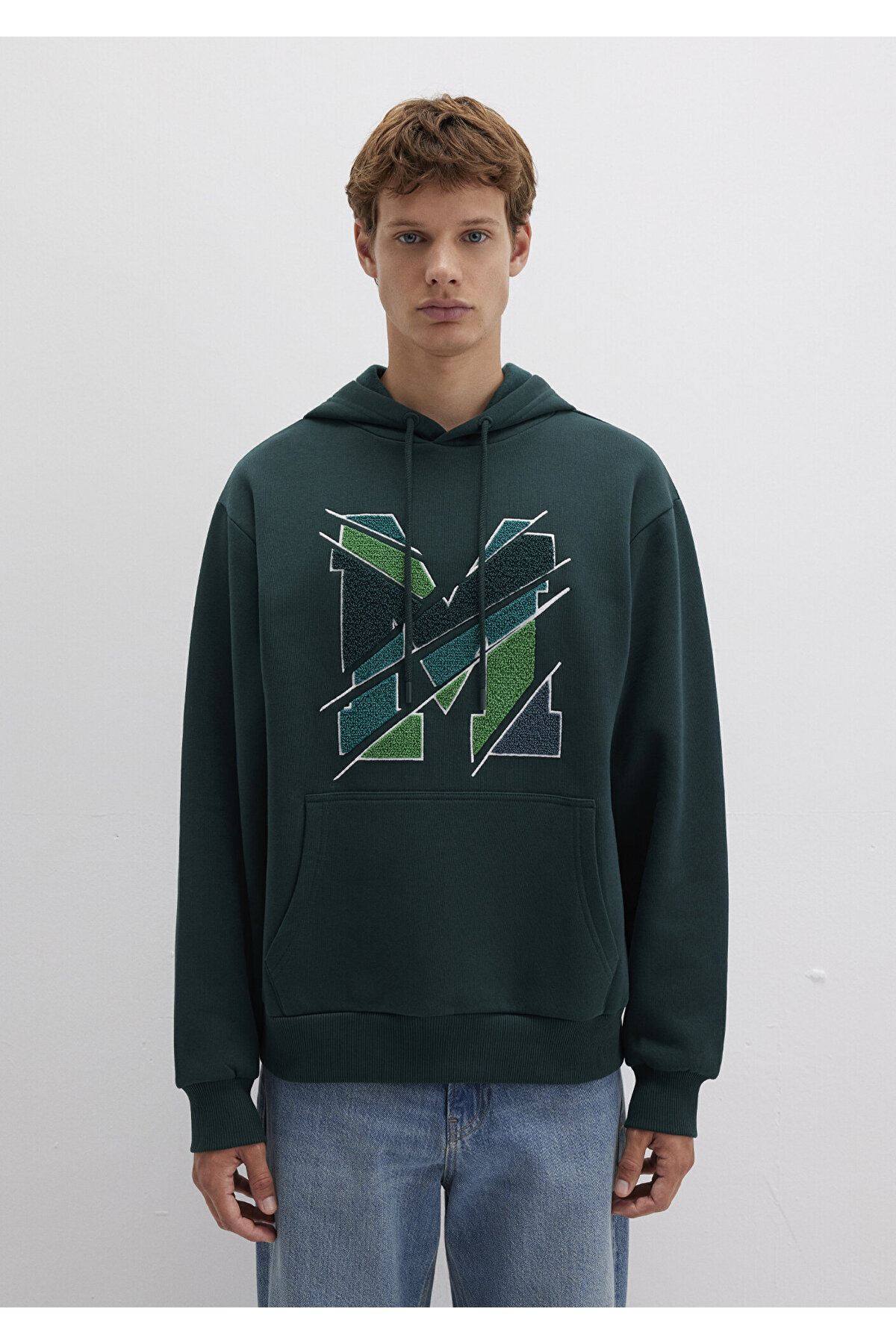 یک سویشرت کلاهدار سبز با چاپ لوگوی M از مجموعه مردانه Mavi.