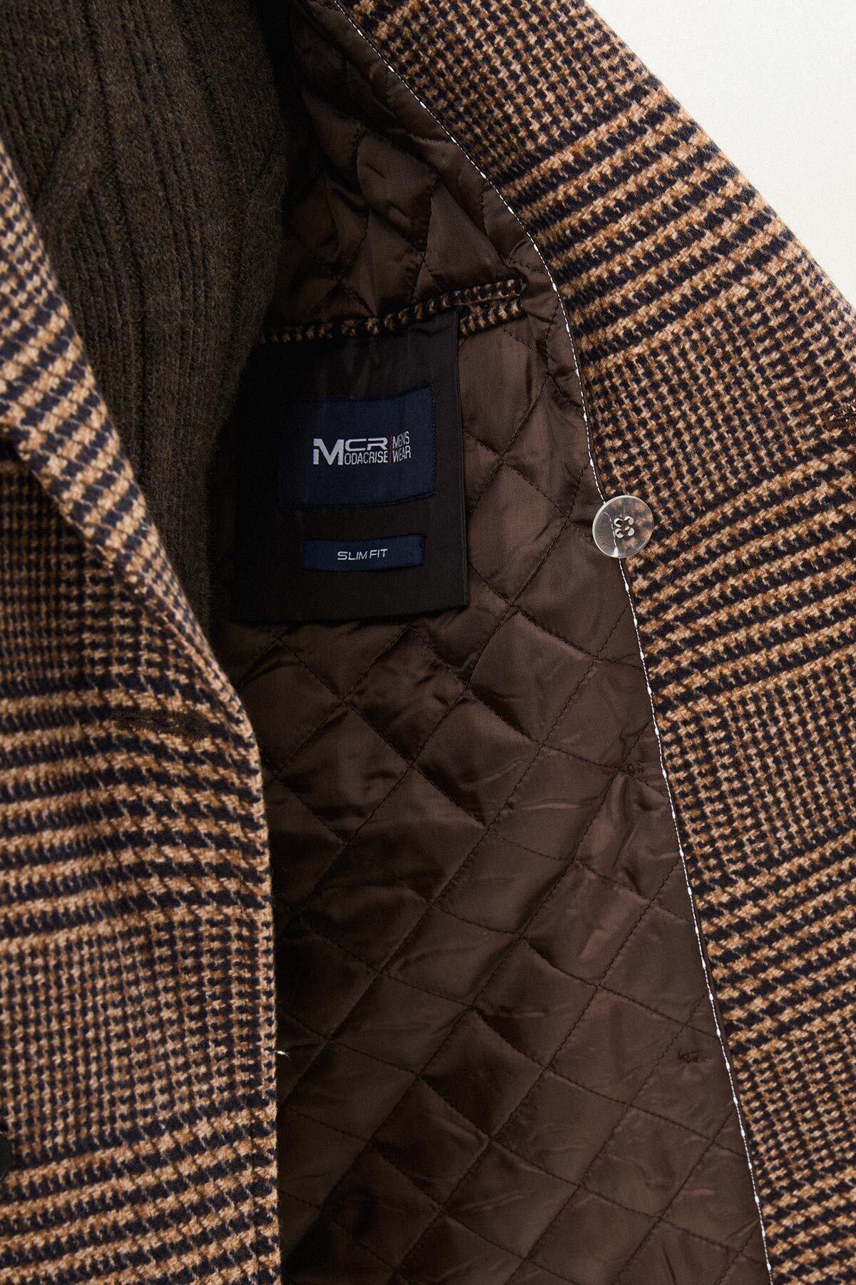 خرید اینترنتی پالتو مردانه پشمی چهارخانه باریک، یقه پهن، دو دکمه، رنگ شتری – 21328.25K برند Mcr اورجینال از MCR – MODA CRİSE نمایندگی ترکیه
