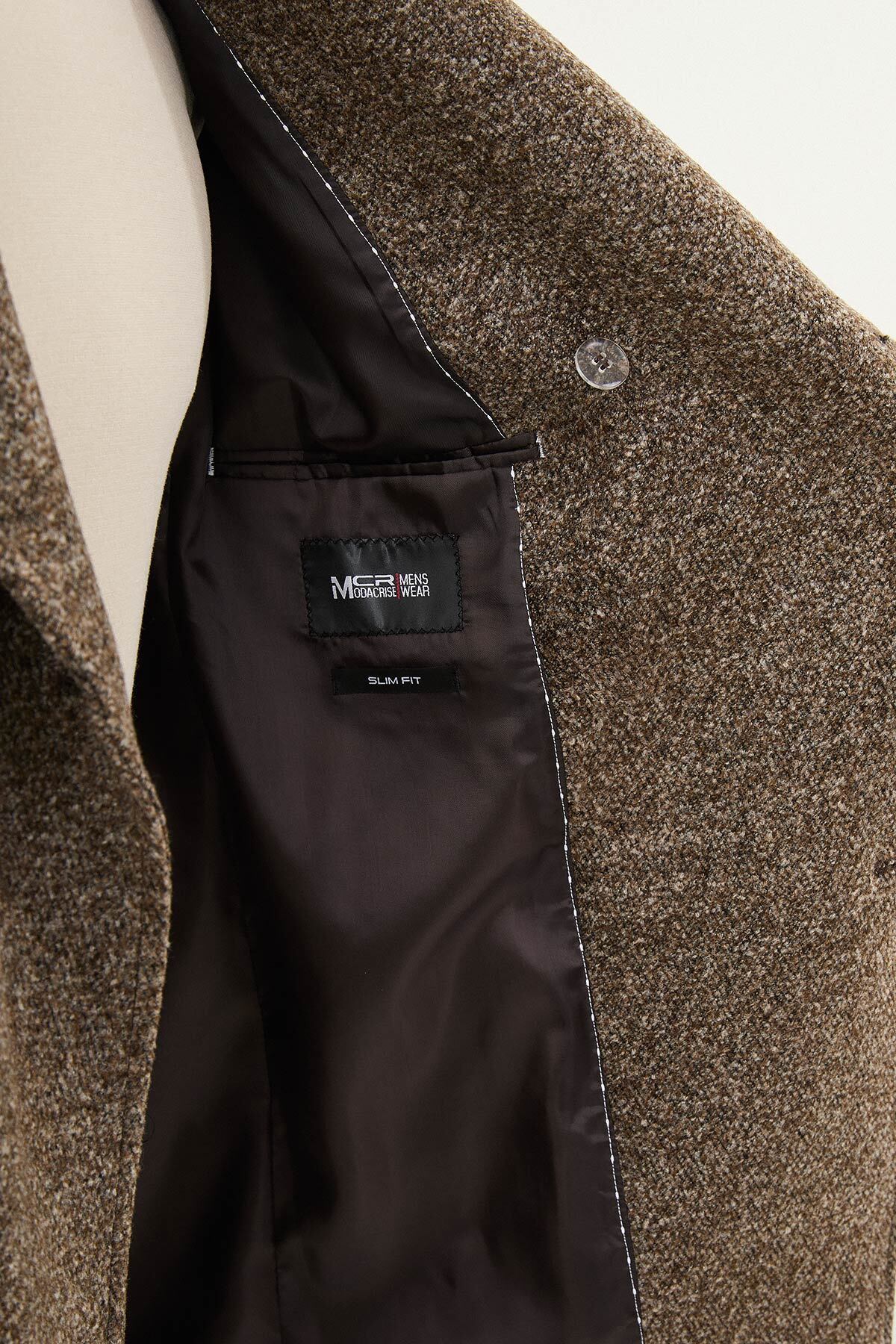 خرید اینترنتی پالتو مردانه پشمی یقه شالی پهن و چاکدار، دکمه ضربدری، رنگ خاکی – 21330.25K برند Mcr اورجینال از MCR – MODA CRİSE نمایندگی و فروشگاه معتبر ترکیه