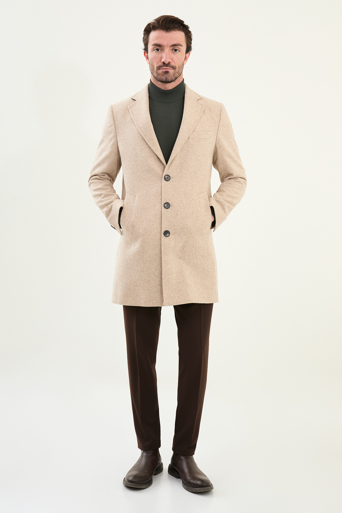 خرید اینترنتی پالتو مردانه پشمی کلاسیک یقه باریک ساده تک رنگ بژ – 21331.25K برند Mcr اورجینال از MCR – MODA CRİSE نمایندگی ترکیه