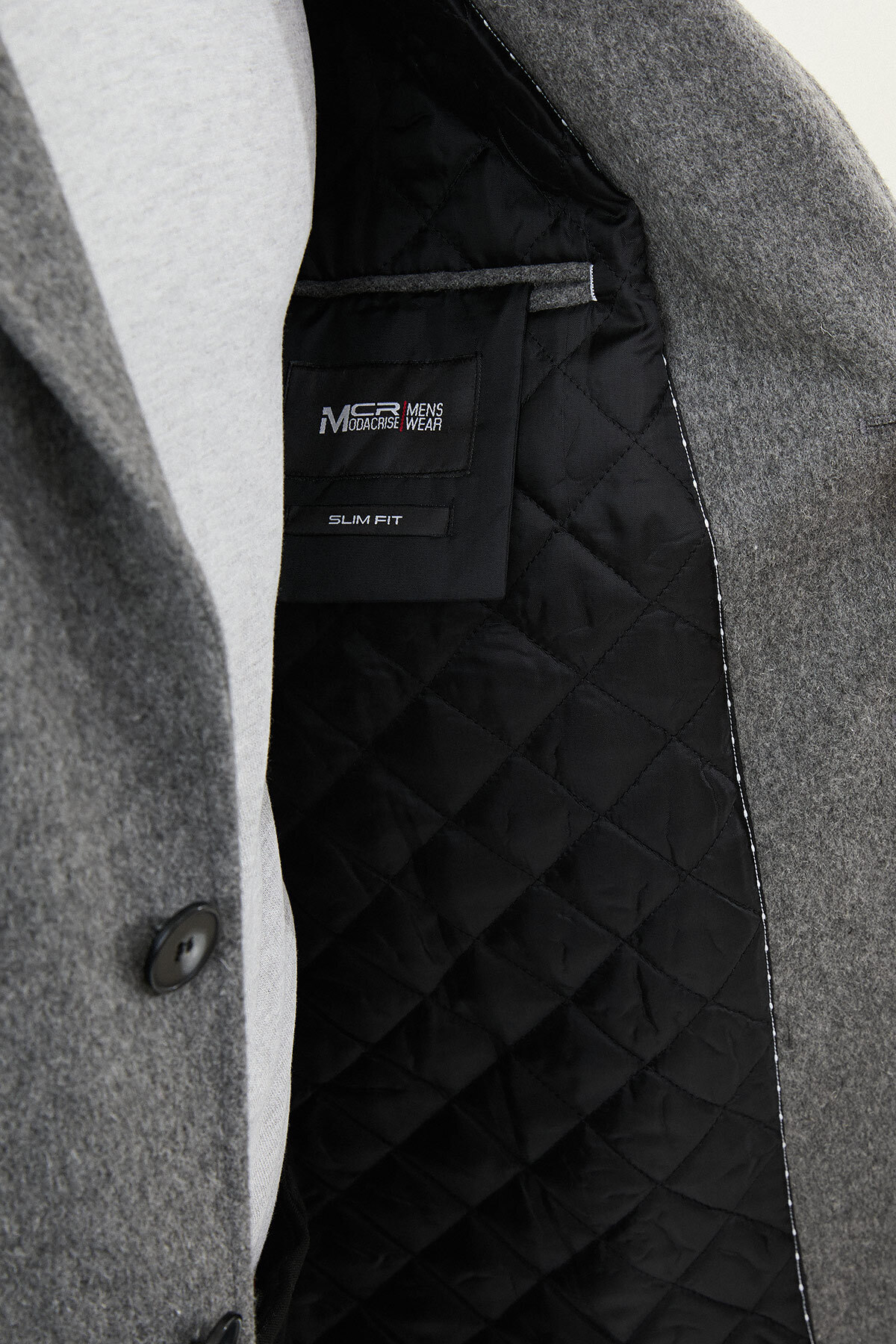 خرید اینترنتی پالتو مردانه پشمی کلاسیک یقه تک رنگ ساده و اسلیم فیت، رنگ آنتراسیت – 21331.25K برند Mcr اورجینال از MCR – MODA CRİSE نمایندگی ترکیه