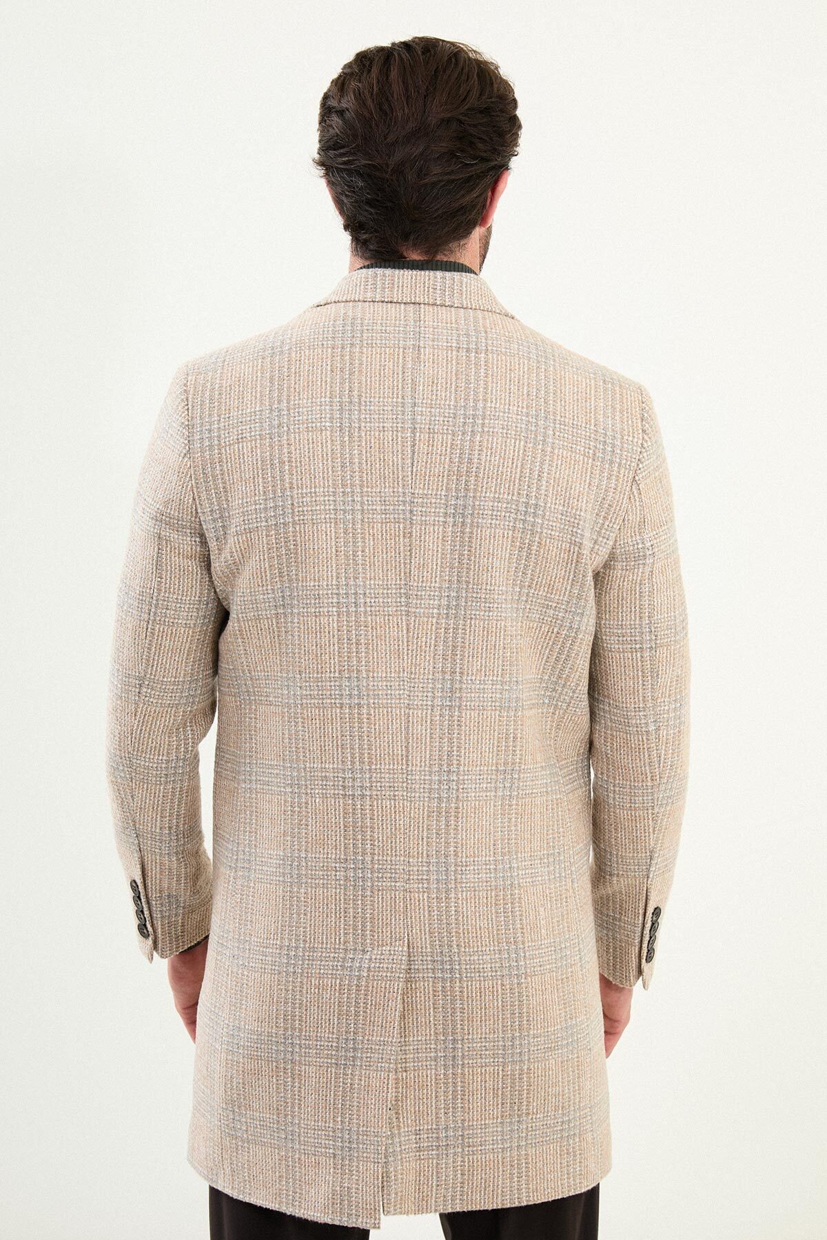 خرید اینترنتی پالتو مردانه پشمی چهارخانه باریک یقه تک رنگ بژ – 21333.25K برند Mcr اورجینال از MCR – MODA CRİSE نمایندگی ترکیه