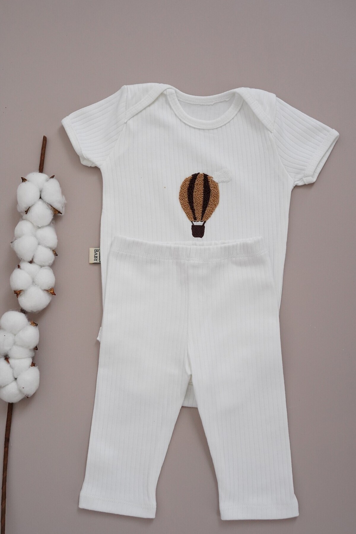 خرید اینترنتی ست بادی نوزادی آستین کوتاه گلدوزی شده با بادکنک به همراه دکمههای فشاری و جوراب شلواری برند ملز بیبی MELLS BABY اورجینال از Mells Baby نمایندگی ترکیه