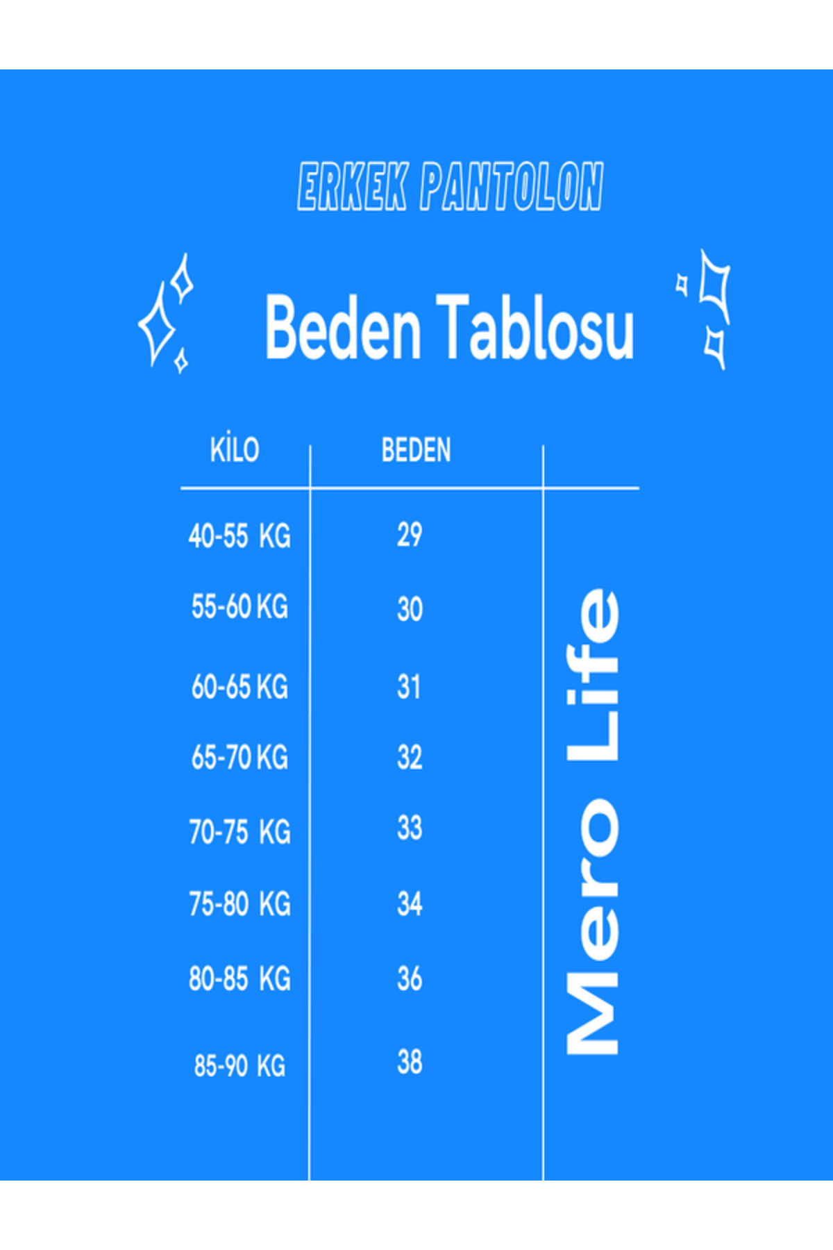 ۳۸ سایز: دور کمر: ۵۰ / ساق: ۱۹ اینچ / طول: ۱۰۳ اینچ / ساق: ۳۴ اینچ