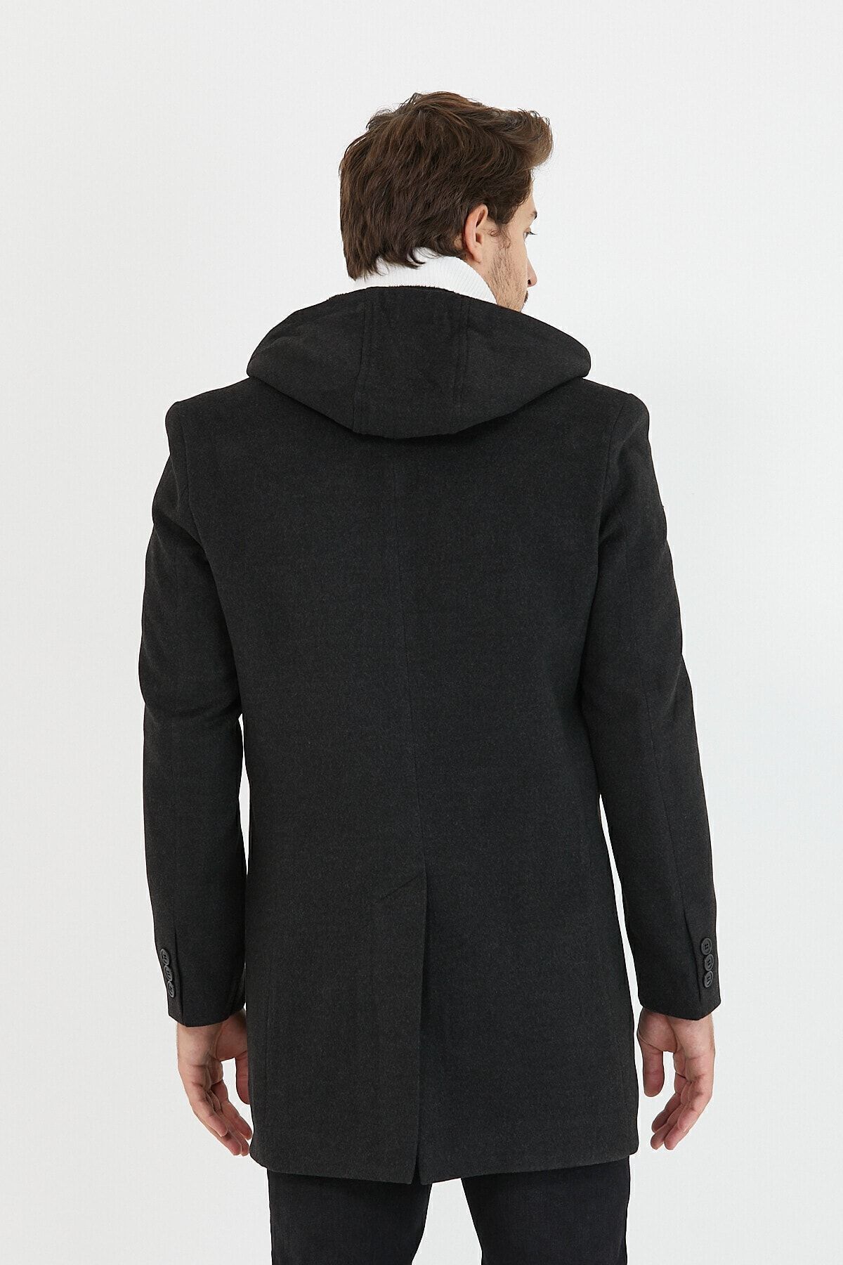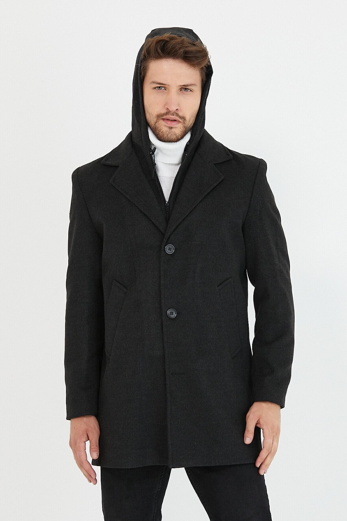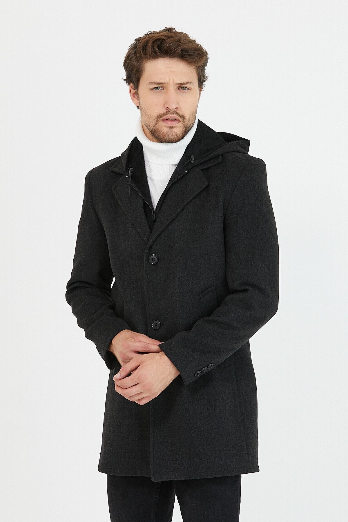 خرید اینترنتی پالتو بلند مردانه کلاهدار از جنس پشم آنتراسیت و جنس کشمیر، دارای زیپ و دکمه در جلو برند مرو لایف Mero Life اورجینال از MeroLife نمایندگی و فروشگاه معتبر ترکیه