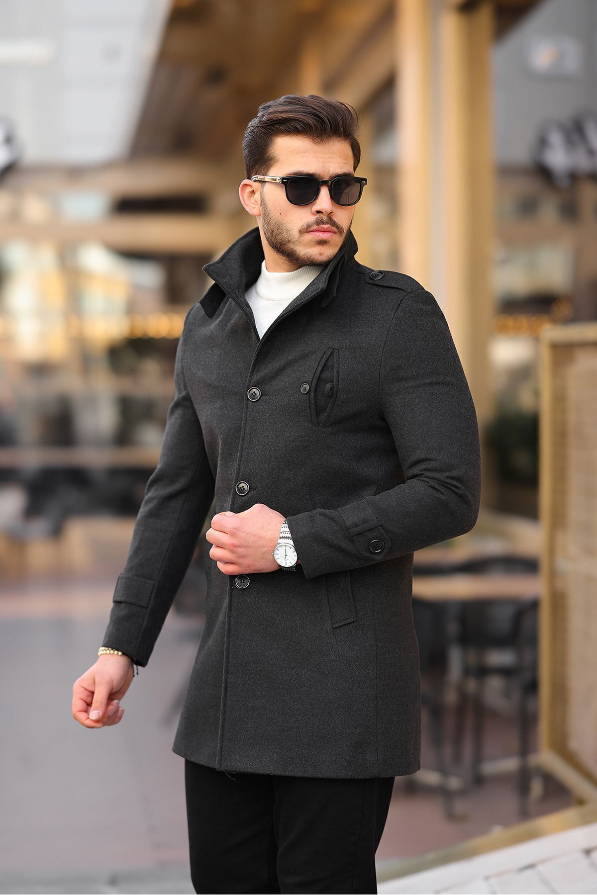 خرید اینترنتی پالتو بلند کشمیری مردانه اسلیم فیت آنتراسیت برند مرو لایف Mero Life اورجینال از MeroLife نمایندگی ترکیه