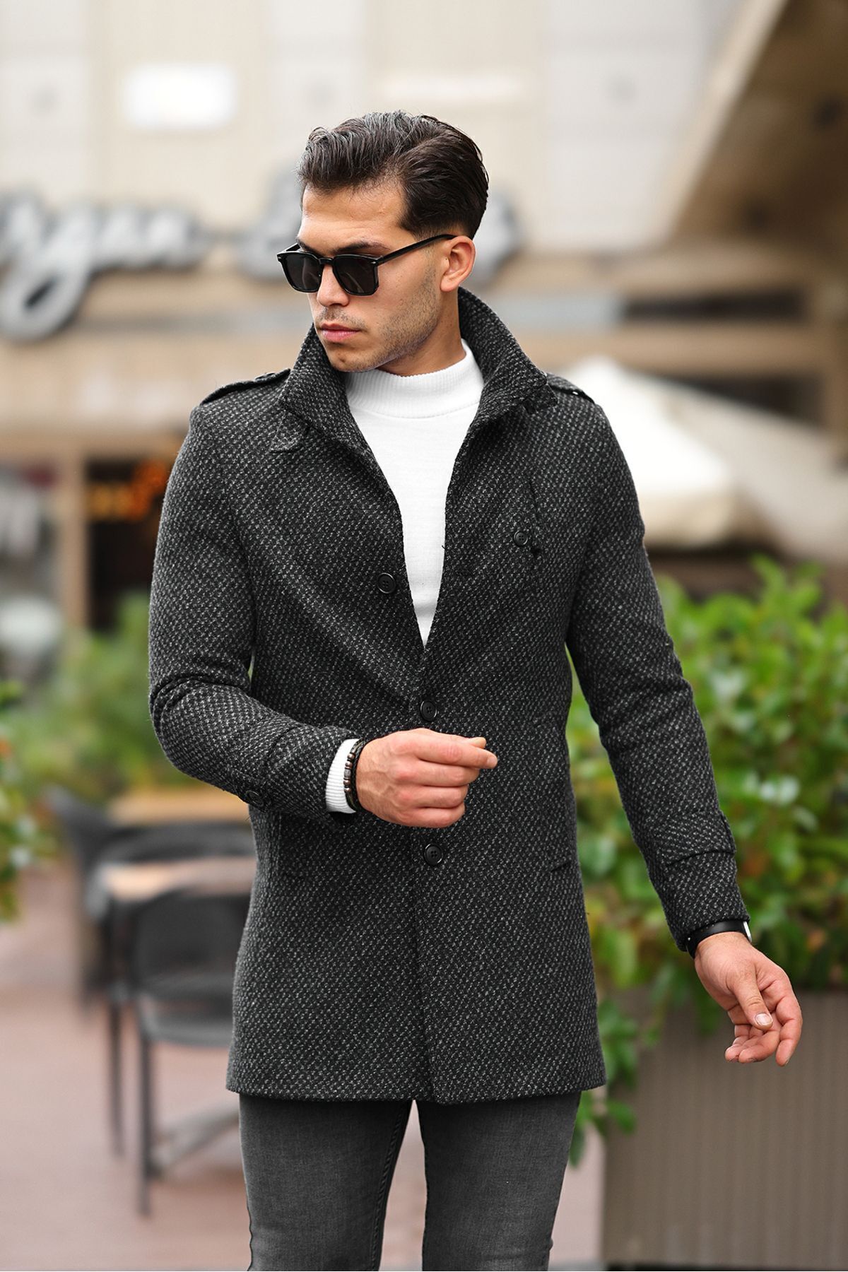 خرید اینترنتی پالتو بلند کشمیری طرحدار تیره اسلیم کات مردانه برند مرو لایف Mero Life اورجینال از MeroLife نمایندگی ترکیه