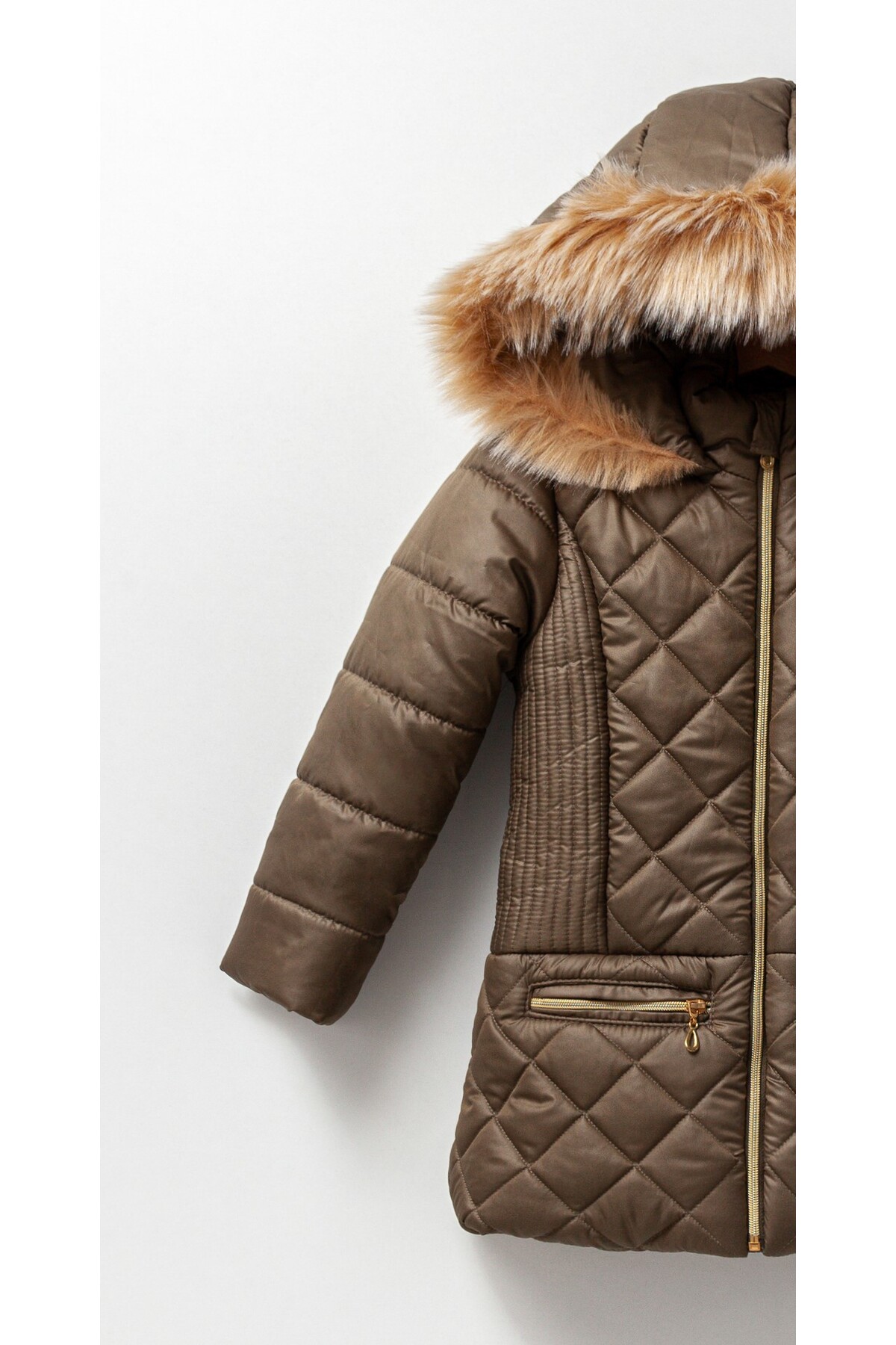 خرید اینترنتی کاپشن و پالتو زمستانی دخترانه، آستر پشمی، روکش خز، کلاه دار، ضد آب، ضد باد، پفی برند MISS PALLONE اورجینال از TOMBALAKKİDS نمایندگی ترکیه