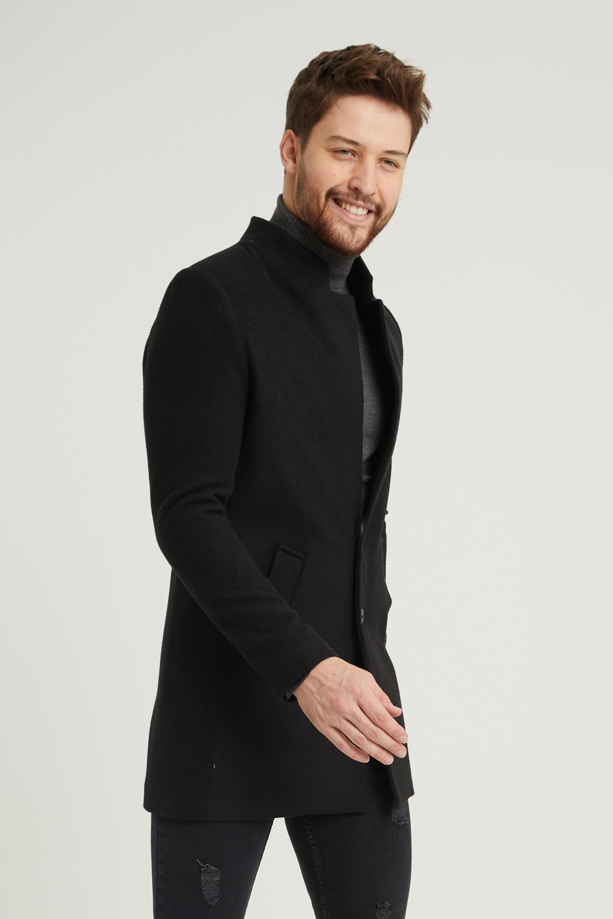 خرید اینترنتی پالتو کشمیر مردانه مشکی اسلیم فیت یقه ایستاده برند MODAMESTO اورجینال از Modamesto نمایندگی ترکیه