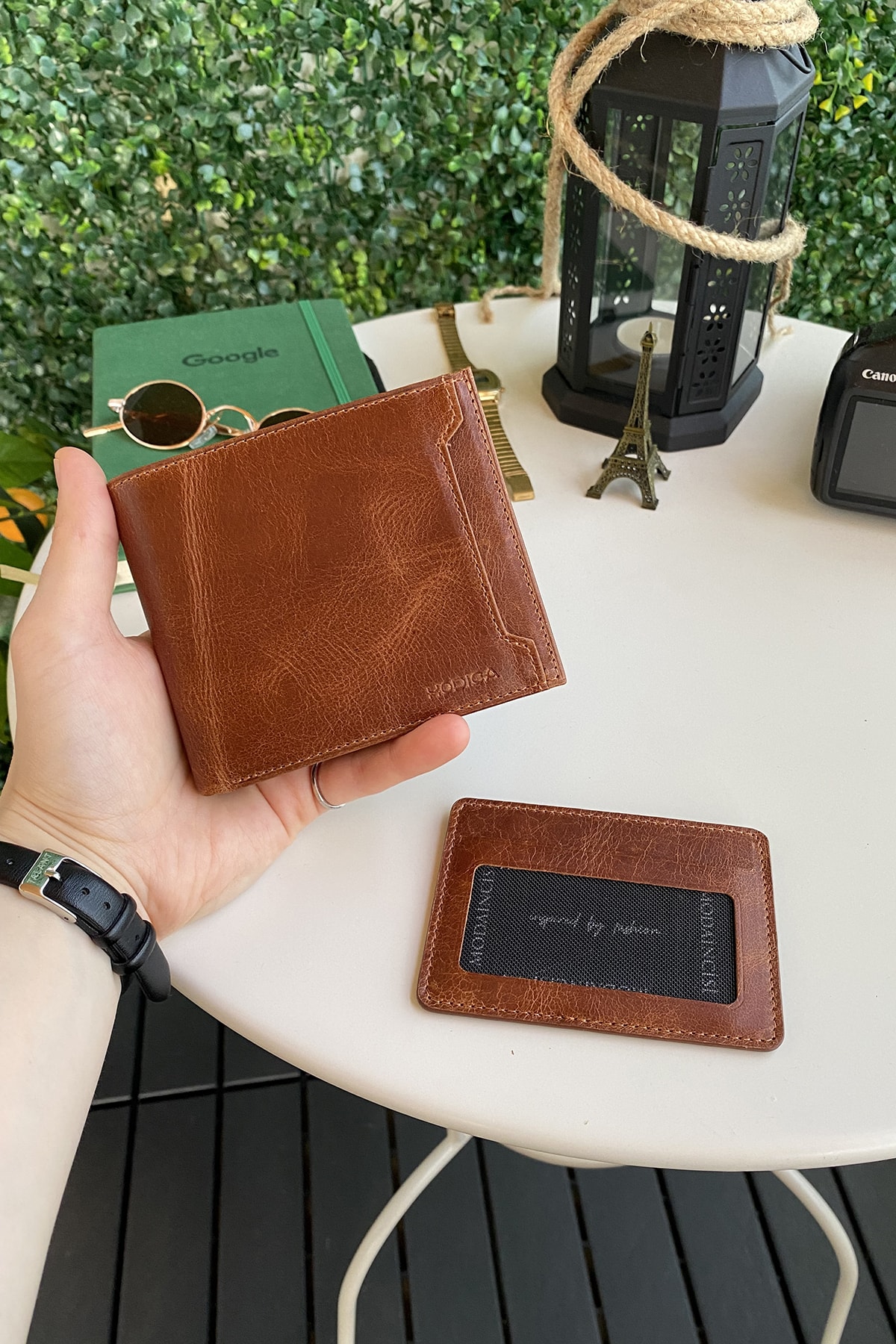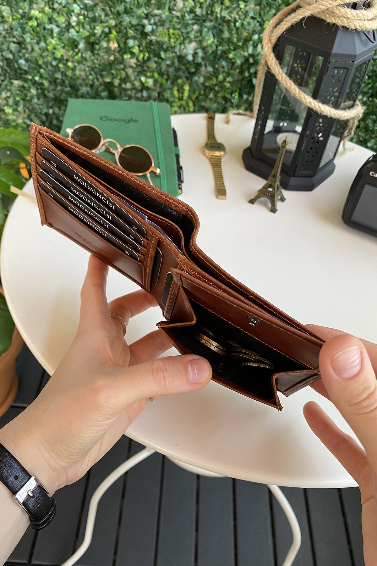 کیف پول مردانه چرم اصل مودیکا دالاس با محفظه کانگورویی و جای کارت جداشدنی. خطوط شیک، جزئیات سطح بالا و طراحی دستساز.
