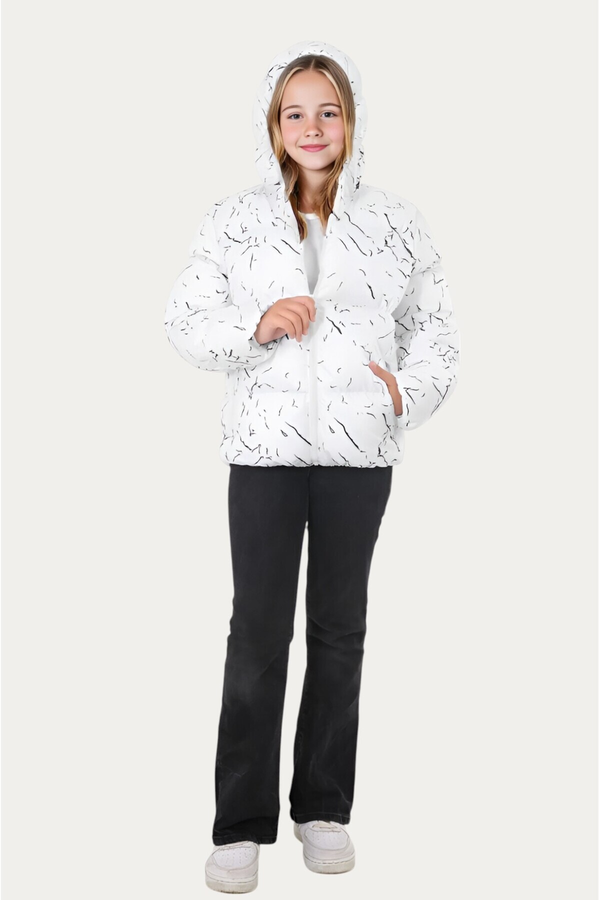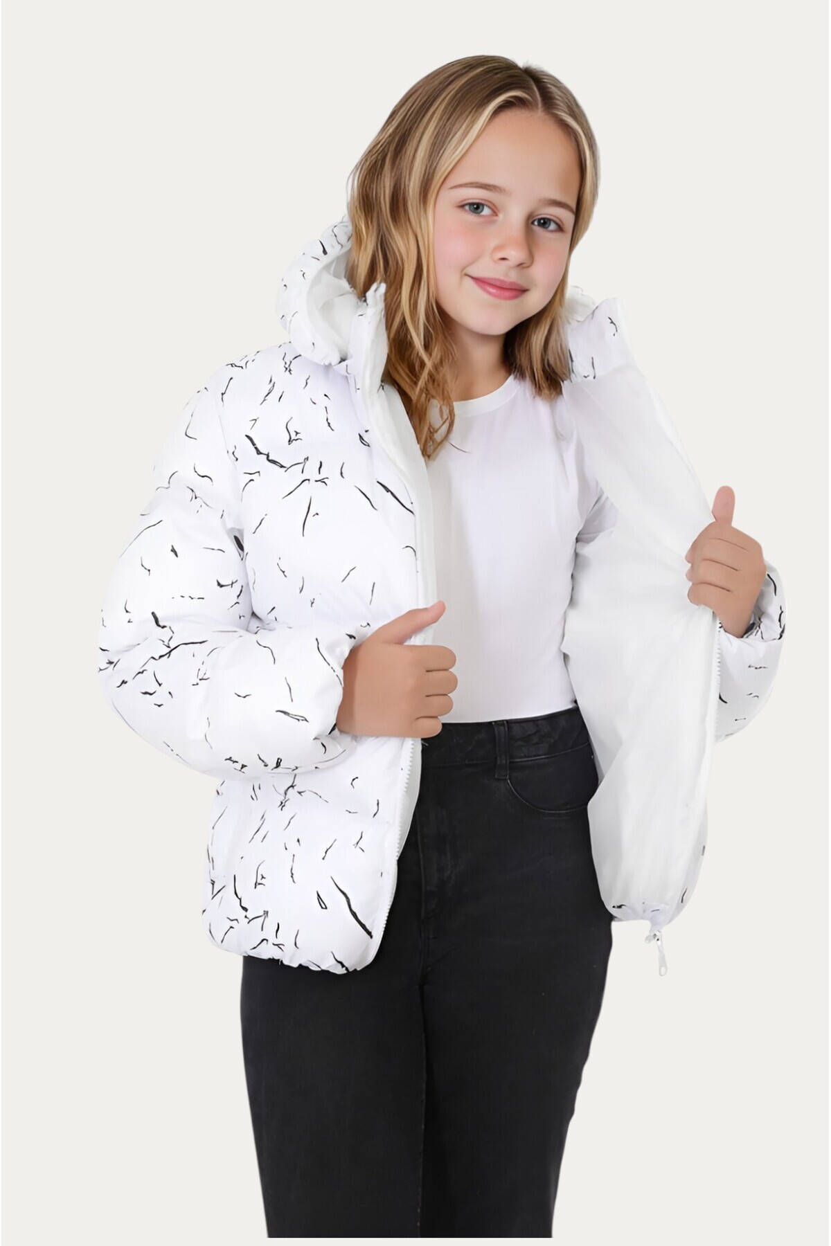 خرید اینترنتی کاپشن و پارکا زمستانی دخترانه سفید، کلاهدار، ضد آب و باد، جداشونده، دارای جیب برند Montstop اورجینال از First Stops نمایندگی ترکیه