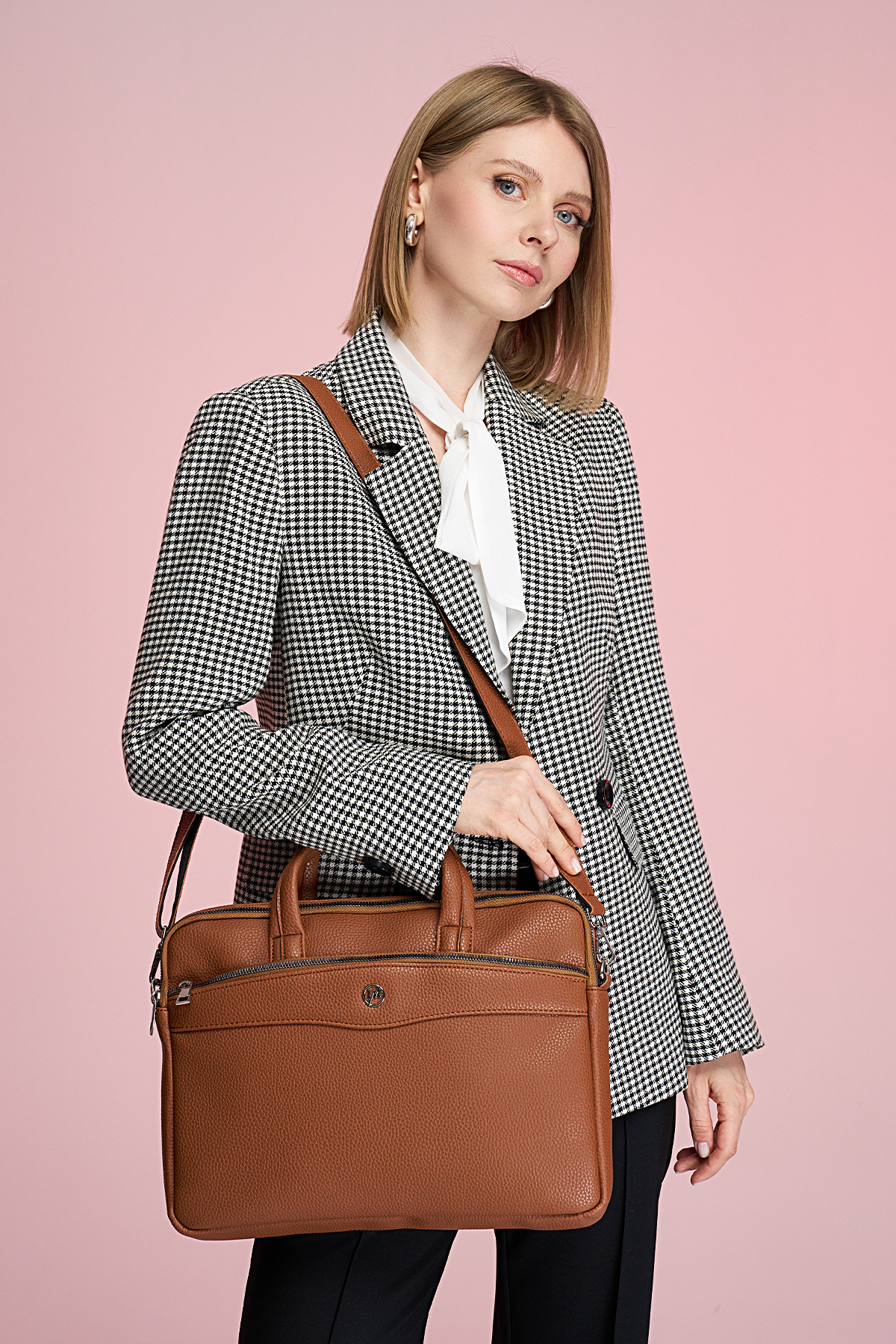 کیف اداری با محفظه لپتاپ، سایز ۱۶ و ۱۷ اینچ، قهوهای روشن، مناسب برای همه سنین زنانه | MORCA S102