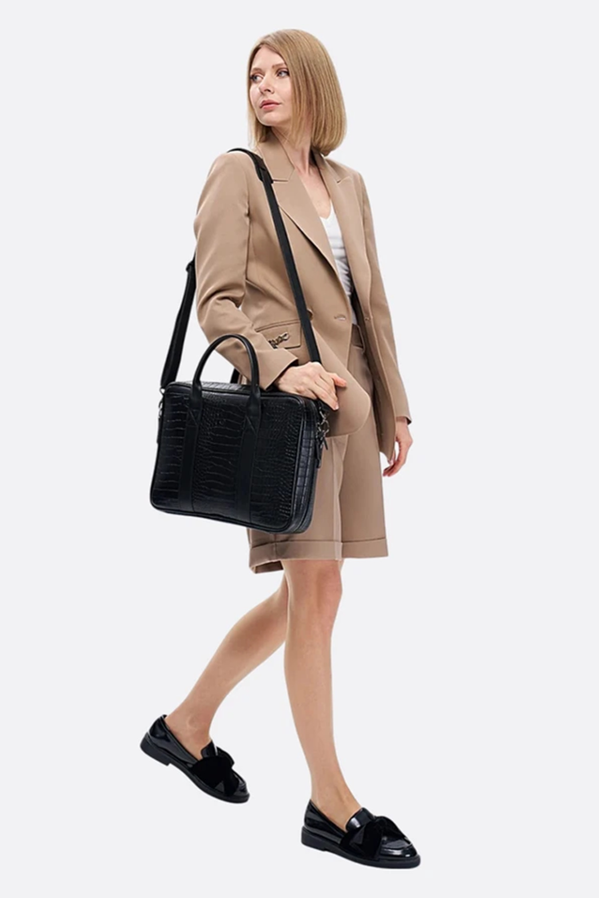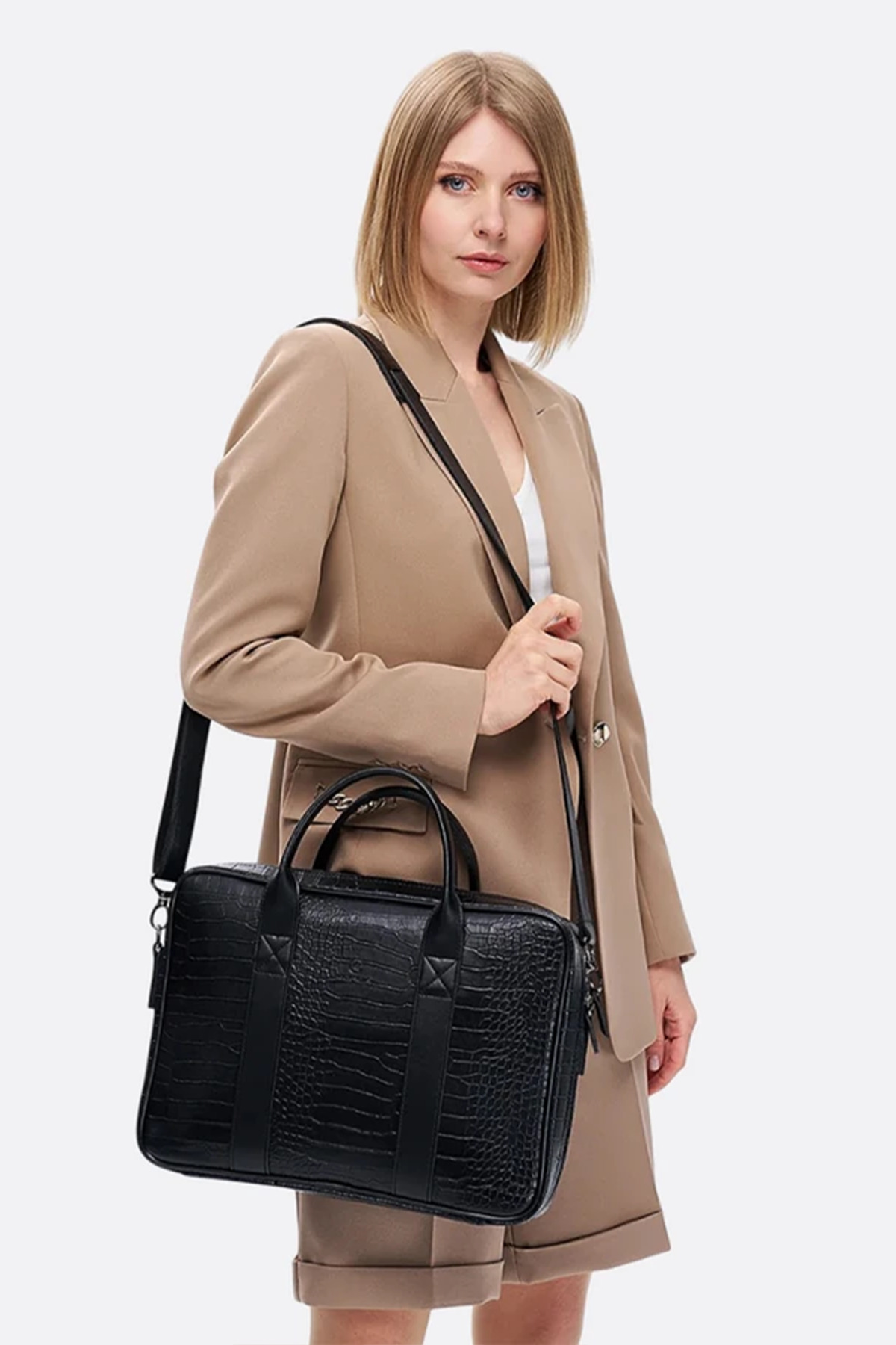 کیف لپتاپ مکبوک مدل 15.6 و 16 اینچ طرح تمساح مشکی زنانه | MORCA S2053