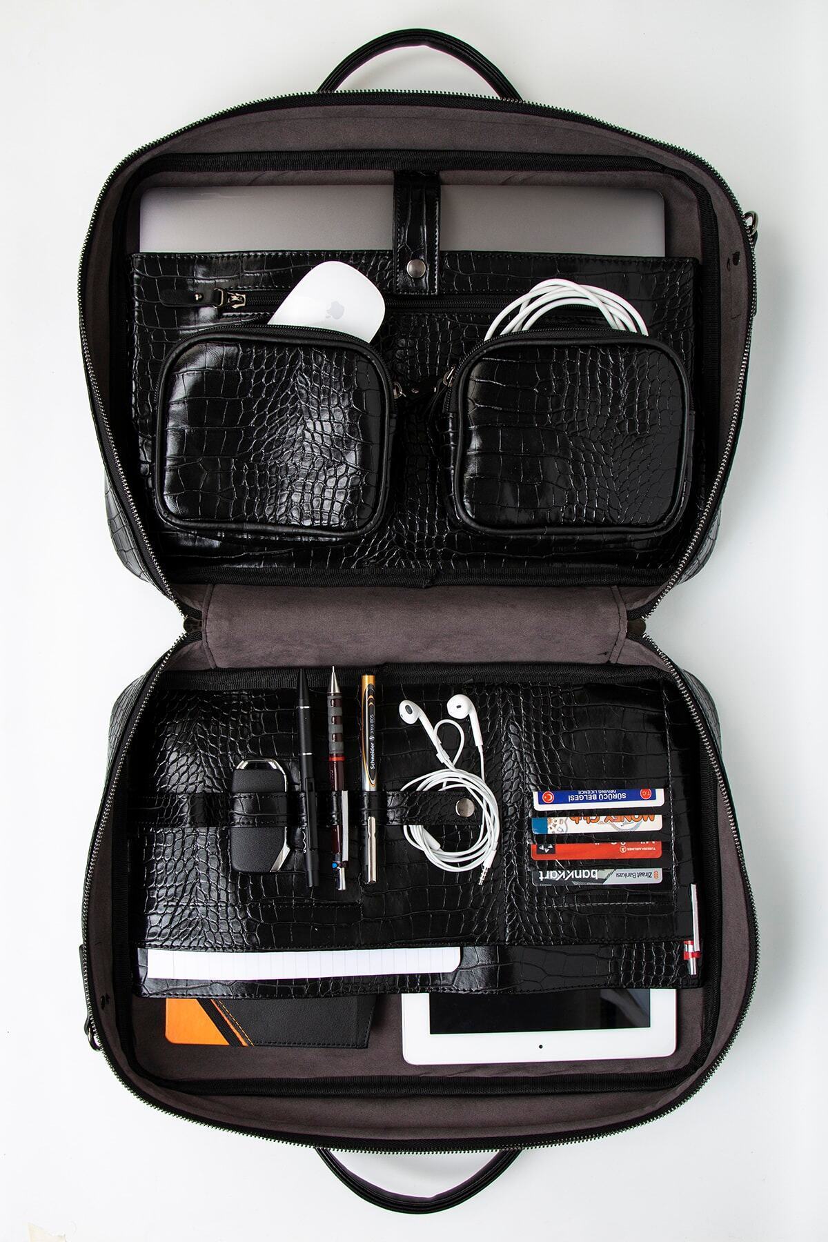 خرید اینترنتی کیف لپتاپ مکبوک مدل 15.6 و 16 اینچ طرح تمساح مشکی برند MORCA اورجینال از morcacanta نمایندگی ترکیه