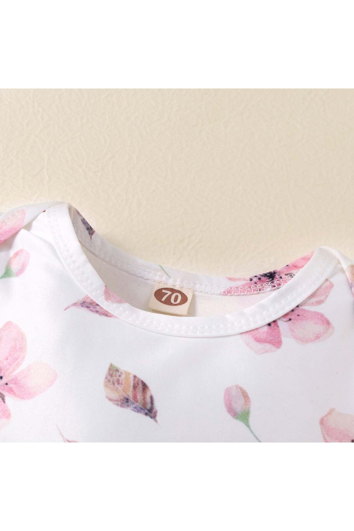 طرح: رامپر شیک نوزادی با شانههای چیندار و طرح گلهای صورتی، کودک شما را جذابتر میکند.