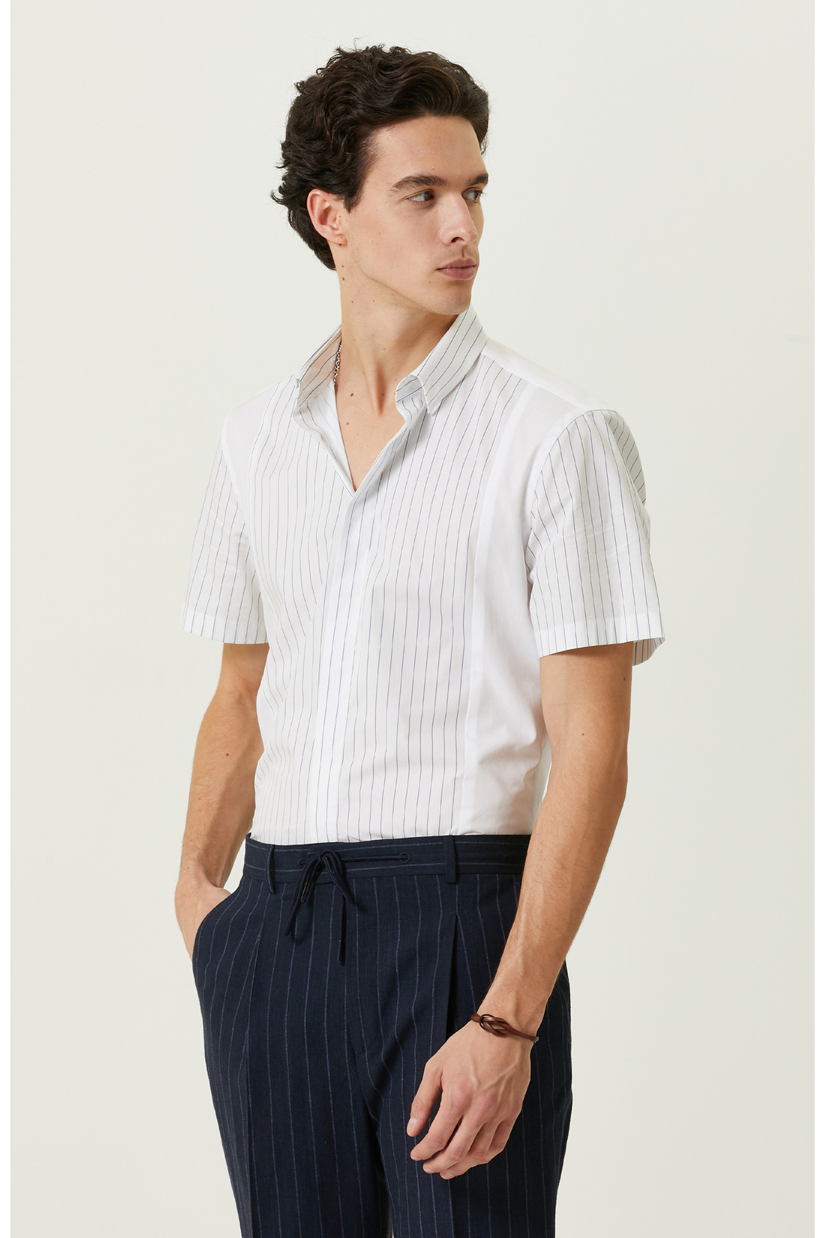خرید اینترنتی پیراهن یقه کلاسیک راه راه سفید آبی برند نتورک Network اورجینال از Network نمایندگی و فروشگاه معتبر ترکیه