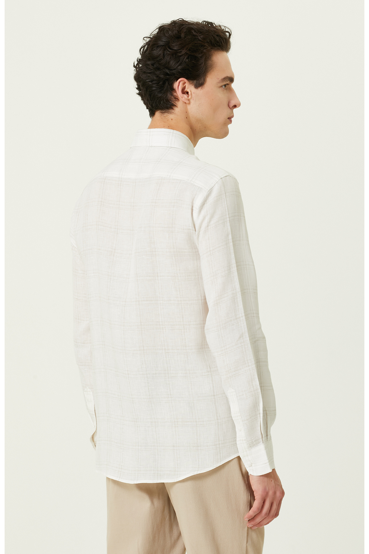 خرید اینترنتی پیراهن کتانی چهارخانه رنگ کرم برند نتورک Network اورجینال از Network نمایندگی ترکیه