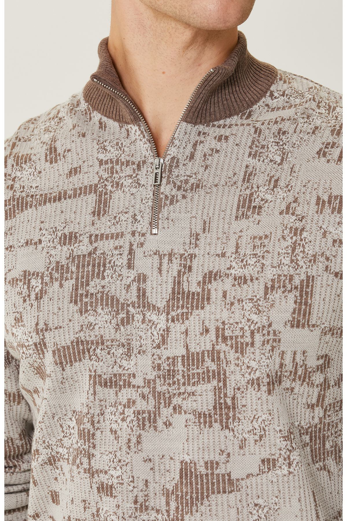 نتورک ژاکت بافتنی طرح دار استتار خاکی آنتراسیت