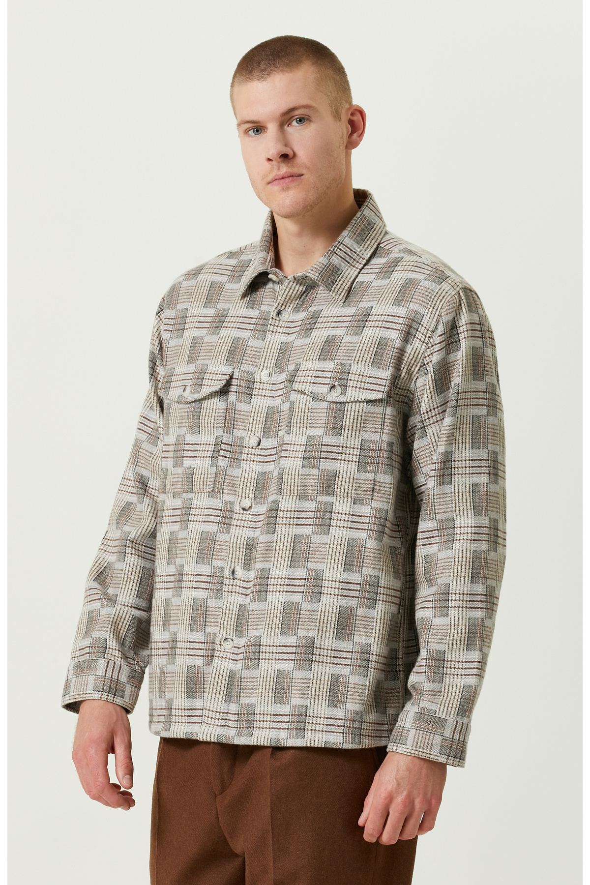 خرید اینترنتی پیراهن چهارخانه نخی خاکستری یقه کلاسیک برند نتورک Network اورجینال از Network نمایندگی ترکیه